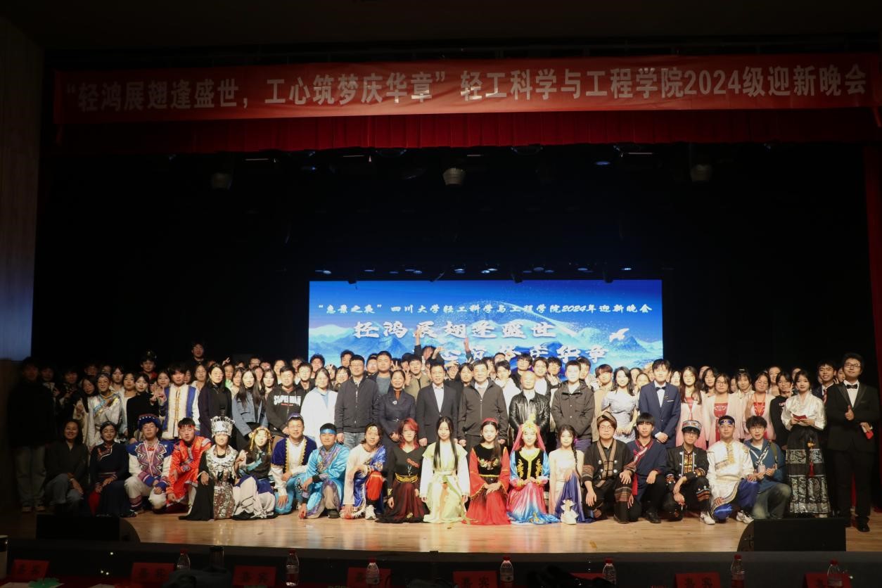 院长彭必雨教授,党委副书记冯国涛副教授,皮革系主任林炜教授,食品系主任吕远平教授,班主任代表刘文涛、蒋和金、卢云浩、夏许寒老师,以及学院教导员邱华明老师,学生事务办公室主任、2022级本科生辅导员贺婷老师,分团委书记、研究生辅导员王舒灏老师,2021级本科生辅导员贾欣驹老师,2024级研究生辅导员尚娇娇老师,2024级本科生辅导员余昕玲老师。学院2024级全体新生参加了本次晚会。