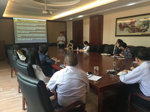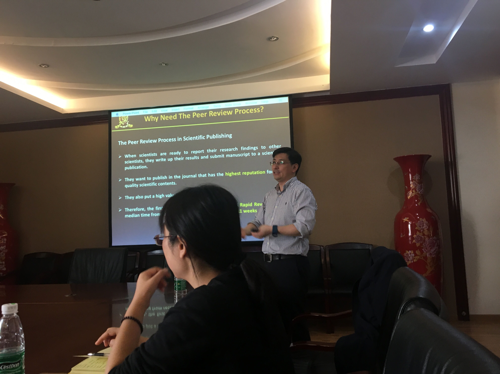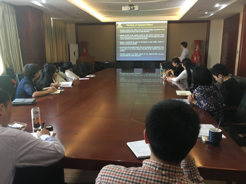 应羞羞漫画 轻纺与食品学院和《皮革科学与工程》杂志社邀请,香港中文大学化学系魏涛教授(Prof. To Ngai)于2018年4月4日到羞羞漫画 进行学术交流,并就杂志社英文期刊创刊事宜与编辑部及相关老师座谈,做了一场题为“Managing a High Reputation Journal: Aperspective from A Scientific Researcher”的精彩报告。座谈会由生物质与皮革工程系系主任林炜教授主持,轻纺与食品学院院长何有节教授介绍了魏涛教授的研究工作经历并致欢迎词。会上魏涛教授主要分享了他在担任ACS旗下期刊Macromolecules主编(吴奇教授)助理(Assistant Editor)工作两年期间,有关审稿过程管理、编辑部主要成员职责以及怎样提高期刊的学术声誉等方面的经验;并从一位研究学者的角度对如何创办一个高水平且有持续发展活力的英文学术期刊提出了自己的建议和看法。《皮革科学与工程》杂志社社长陈武勇教授、编辑部陈玲主任、陈慧副教授、王亚楠副教授等老师就英文期刊在创办工作及与国外出版公司合作中可能遇到的问题与魏教授进行了比较深入的讨论和交流,探讨了一些可操作性较强的应对措施。 魏涛:博士(PhD)、香港中文大学化学系教授。魏涛教授于1999年以一等荣誉毕业于香港中文大学化学系,之后师从吴奇院士攻读博士学位,于2003年获香港中文大学化学系化学博士学位;2003年-2005年在德国巴斯夫公司任职,2005年7-12月在美国明尼苏达大学做博士后研究;2006年1月起在香港中文大学任教,且在2006年1月-2008年1月期间担任高分子学科Macromolecules的副主编助理。2008年被聘为香港中文大学化学系助理教授,并于2012年和2017年分别晋升为副教授和教授。他的主要研究领域包括:高分子、胶体、软物质的设计和合成及其相互作用表征、纳米粒子合成与自组装、自组装理论与方法研究等。魏涛教授近年来在Angewandte Chemie、 Internationnal Edition、Macromole-cules、Soft Matter、Langmuir等国际核心学术期刊发表论文100余篇。