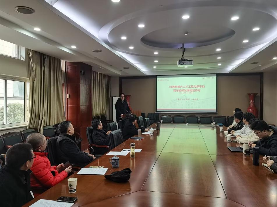 首先,学校人才办于化龙老师带来了题为“以国家重大人才工程为抓手的青年教师发展规划参考”的分享报告。于老师从从国家人才计划体系、青年教师成长阶段规划、科研方向与国家重大需求对接等多个维度展开深入解读,建议青年教师应提前谋划、精准定位,在科学选题的基础上凝练标志性成果,主动契合国家战略需求,为长远发展筑牢根基。