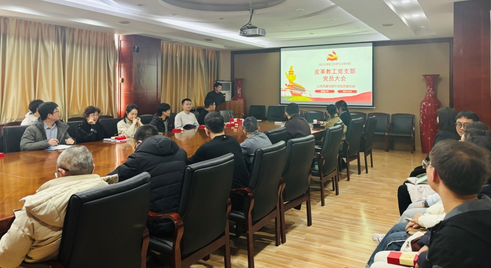 皮革教工党支部在皮革楼209会议室开展了“以高质量党建引领高质量发展”主题党日活动。本次活动旨在深入学习贯彻党的二十届四中全会精神,强化基层党组织建设,切实以高质量党建引领事业高质量发展。活动由支部书记周加境主持,学院党委书记李天富、院长彭必雨、党委副书记兼纪委书记姜新到会指导。
