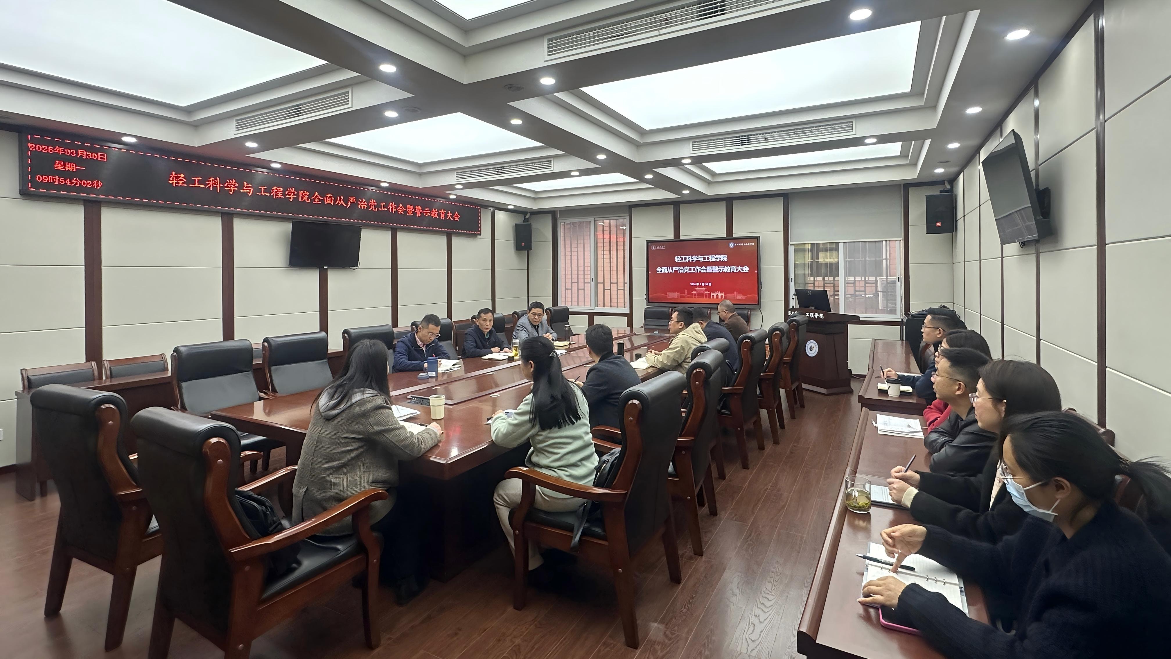 3月30日午,学院在望江校区纺工附楼205会议室召开2026年度全面从严治党工作会暨警示教育大会学院党委书记李天富主持会议并讲话,学院班子成员、两委委员、专职组织员、科级干部、教职工党支部书记等参加会议。