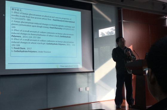 2017年12月4日上午9时,中国农业大学程永强教授来羞羞漫画 开展“魔芋葡甘露聚糖与面团各组分相互作用及对产品功能影响”学术报告,食品工程系何强教授、吕远平教授、迟原龙副教授、赵志峰副教授、卜迁副教授、钟凯博士、任尧博士等多名教师以及100余名研究生和本科同学参加。