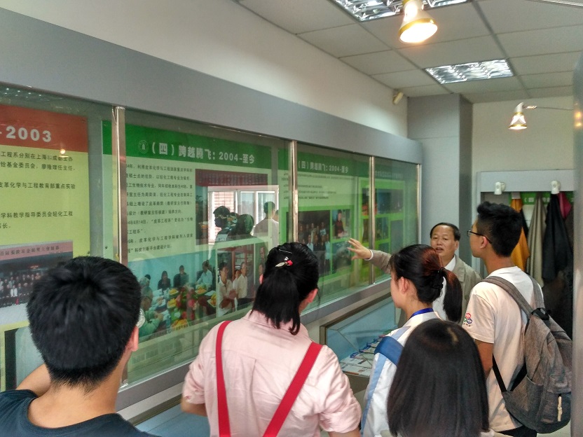 领导有何有节院长、刘晓虎副书记、制革清洁技术国家工程实验室副主任范浩军教授、学院学生科长冯国涛老师等。交流会由范浩军教授主持,何有节教授致欢迎辞,并通过视频介绍了国家工程实验室、教育部重点实验室以及轻化工程学科的发展历程、科学研究、各层次人才培养、学科建设情况及取得的重要成就。随后,由何有节教授与范浩军教授分别带队参观了皮革展厅与中心实验室,向同学们详细介绍了工程实验室的科研平台与主要研究方向。参加交流的高二学生深切感受到了工程技术的魅力,开拓了高中学生的学术视野,为以后理性填报大学志愿奠定了基础。