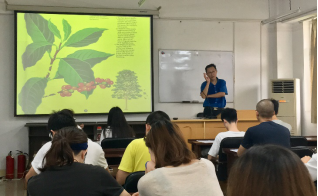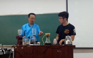 纺工楼A202正式开课。中国咖啡联盟书记长、咖啡技术学会理事长、国际WBC咖啡师比赛评委、高级咖啡讲师汪凯先生及其助手,为我校轻纺与食品、化学、经济、历史文化和电气信息等学院的同学们带来了妙趣横生的课程。汪老师通过四次课程向同学们介绍了咖啡“从种子到杯子”的漫长过程,介绍了产地、种植、采收、焙烤、研磨、冲泡等过程对咖啡风味的影响,并让同学们现场操作机器,亲自实践磨豆和萃取咖啡的过程,制作美式、意式和摩卡咖啡等,对比摩卡、巴西、哥伦比亚和曼特宁等咖啡豆的不同风味。课程生动有趣,同学们积极热情,在与老师的互动中收获良多,度过了愉悦而充实的四个上午,课程获得了圆满成功。
