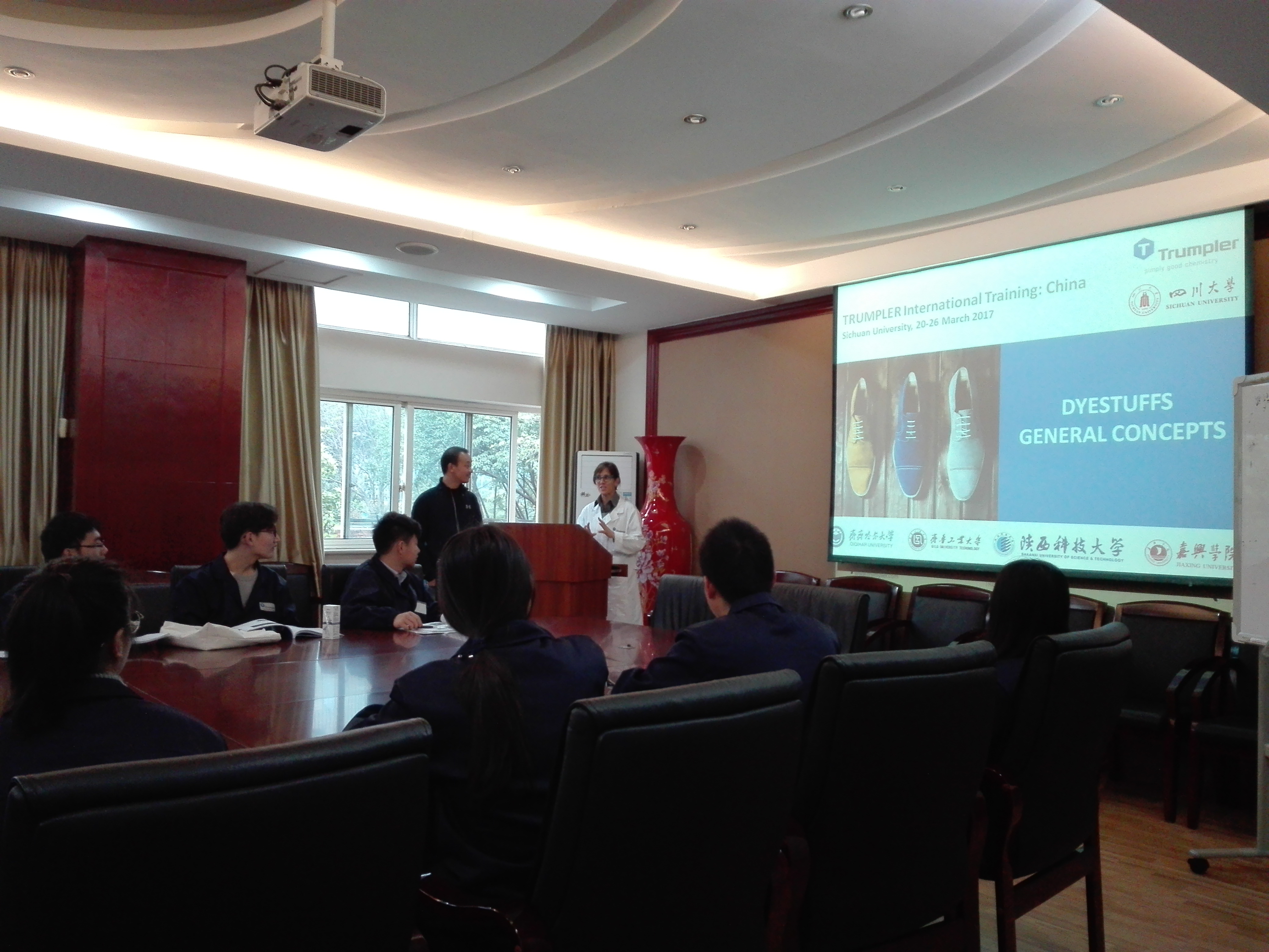 制革技术培训班”是为了提高我国轻化工程专业(皮革工程方向)学生的工程实践能力,增进中国开设轻化工程专业(皮革工程方向)各高校同学和教师的交流,培养与国际市场接轨的制革专业技术人才而举办的。培训班采用课堂教授与实践相结合的方式,讲授牛皮鞋面革和羊皮服装革的试制技术,由汤普勒(Trumpler)集团产品交流和推广经理Dr.Jeffry Guthrie-Strachan(国际皮革工艺师和化学家协会联合会(IULTCS)IUT培训委员会主席)及汤普勒公司其他工程技术人员担任培训主讲,并具体指导学生现场实验和操作。