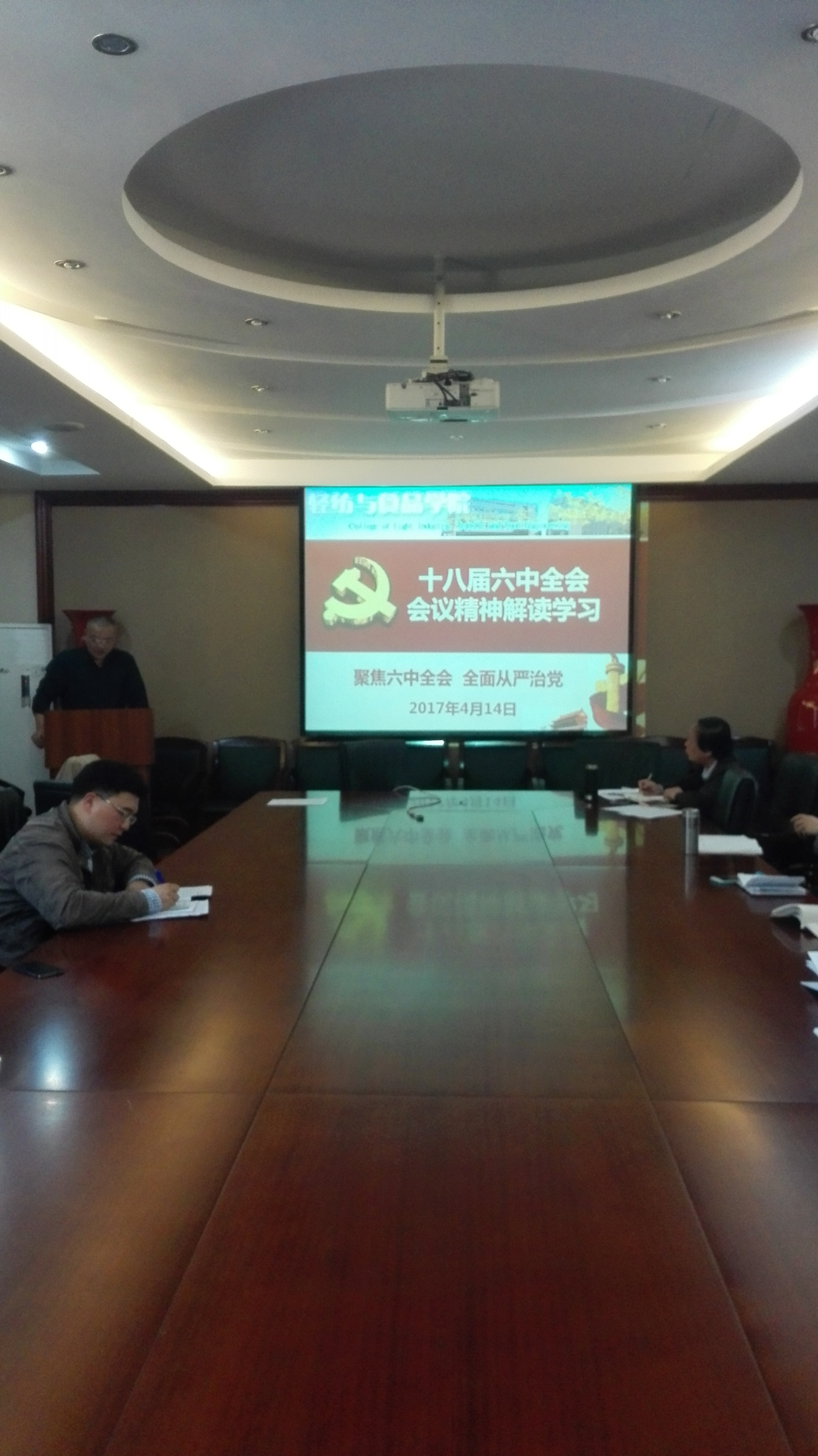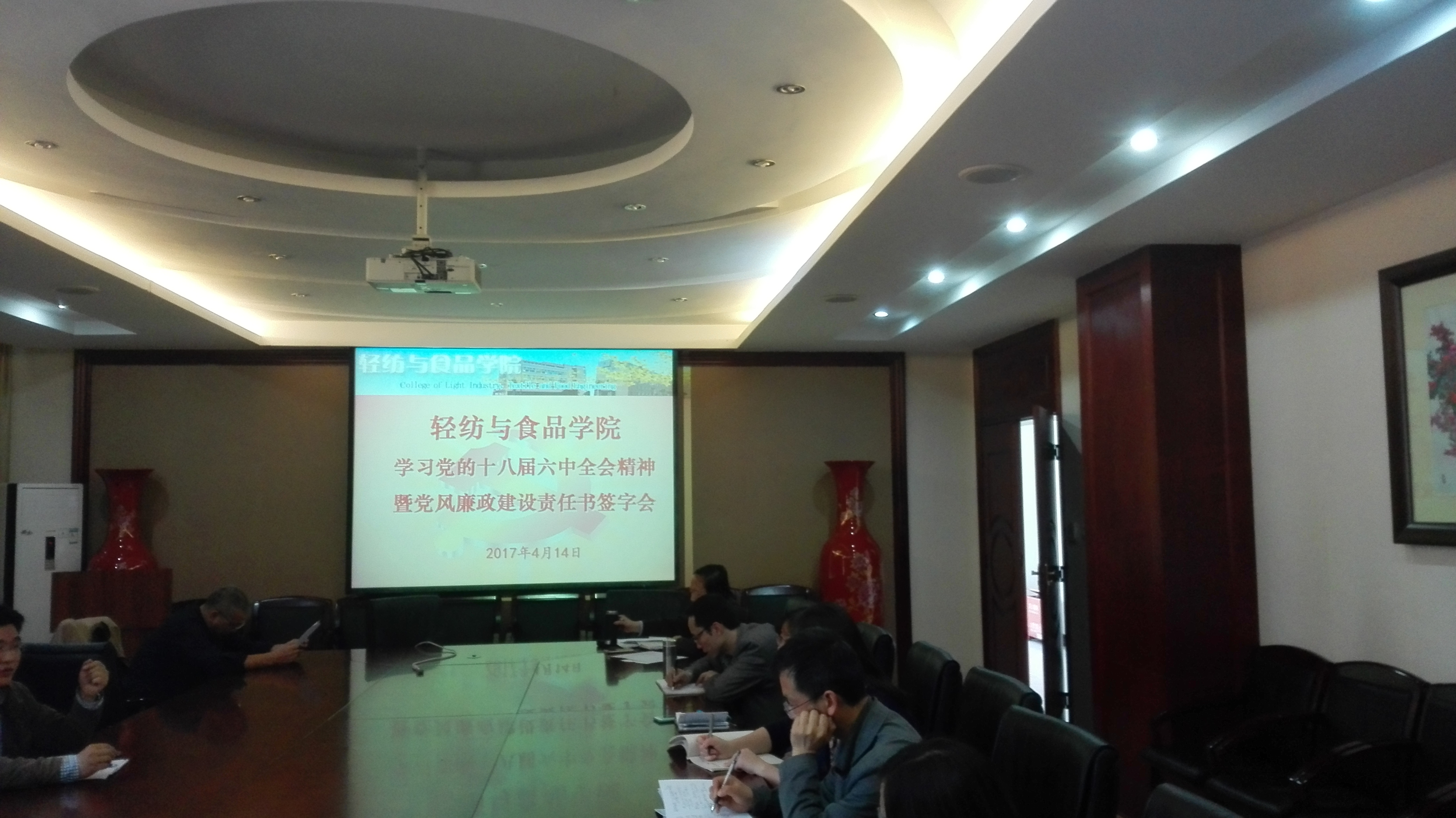 在皮革楼209会议室举行学习十八届六中全会精神暨党风廉政建设责任书的签署大会。参加此次会议的有学院中层领导干部,党委委员、纪委委员,工会主席,科级干部,系所负责人,教职工党支部书记及支委,学生党支部书记及支委。会议由学院副书记兼纪委书记刘晓虎同志主持。赵毅书记就十八届六中全会精神进行了深入的解读,分别从此次会议的主题及议程,核心的确立,加强和规范党内的政治生活,加强党内监督条例四个方面做了重点阐述,让与会人员对十八届六中全会精神有了一个比较全面而深入的认识。在赵书记的讲课之后,由刘书记主持,学院中层领导干部、系主任、教职工党支部书记、科级干部分批签署了党风廉政建设责任书。