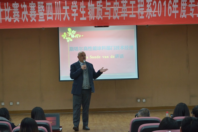 生物质与皮革工程系的邀请,中国皮革工业协会名誉理事长苏超英先生、德国司马化学(香港)有限公司皮革部中国区张建华经理、斯塔尔高性能涂料部门技术经理凯斯先生、斯塔尔广州技术服务中心高性能涂料实验室经理夏敏先生、斯塔尔广州实验室经理李艳女士、斯塔尔合成革应用技术专员李冠男女士、广州狮岭皮革皮具产业研究中心副主任罗杨先生、龙虹池干事参加了本次活动。出席本次颁奖典礼的学院领导有羞羞漫画