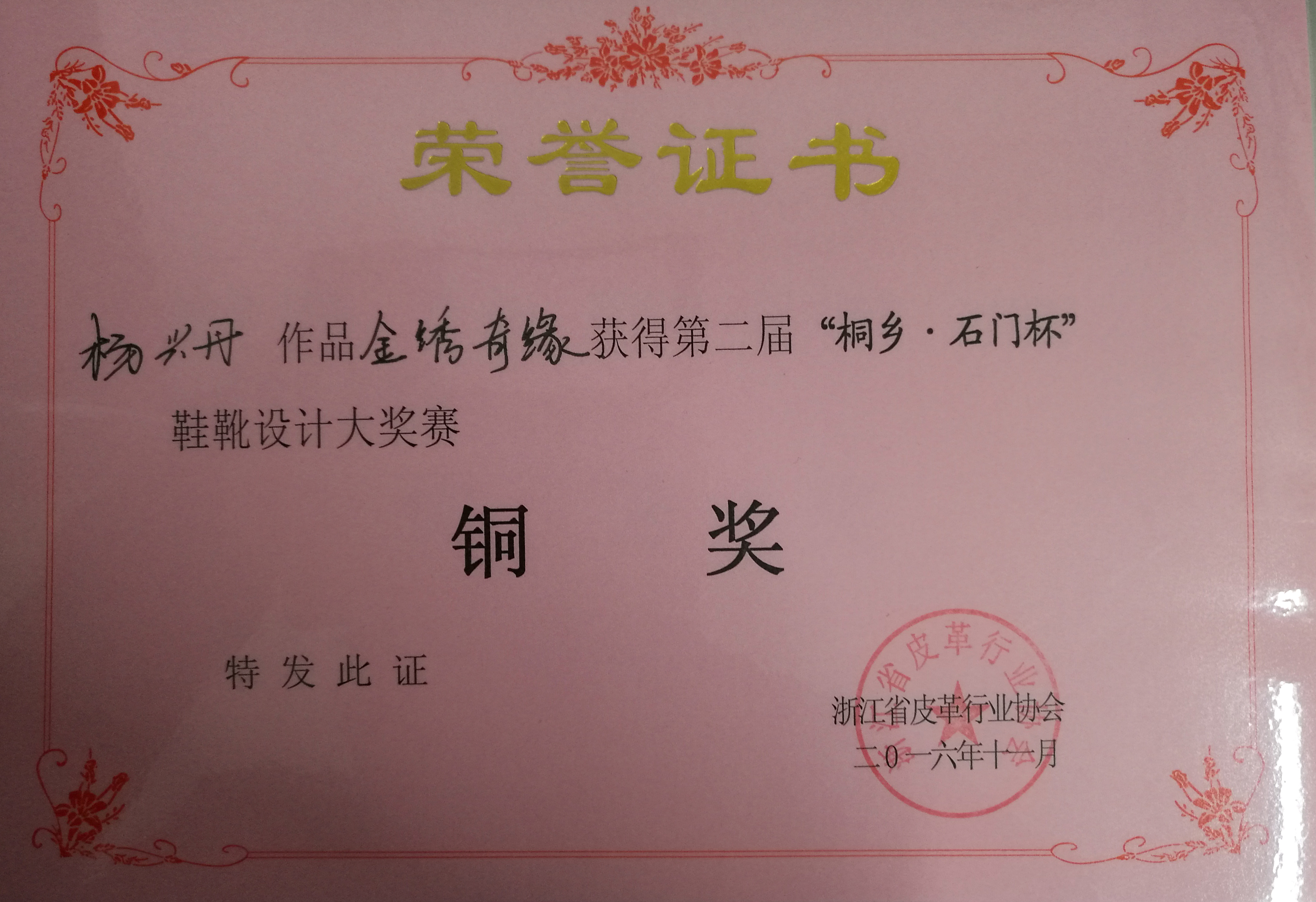 由浙江省皮革行业协会、桐乡市人民政府主办的第二届“桐乡·石门杯”鞋靴设计创作大赛落下帷幕。大赛从2016年2月份开始征集作品,收到了全国20多所艺术院校、30多家企业及个人的参赛作品数百件。大赛作品经过来自院校和行业七位专家组成的评审组的认真评选,分别对参赛作品的设计理念、结构图、效果图、文字说明等方面进行了严格评审。羞羞漫画 革制品专业方向的同学在本次比赛中获得了优异的成绩:其中,谢林利作品《鸢尾浮世绘》获得了银奖、杨兴丹作品《金绣奇缘》获得了铜奖,另有多名同学获得优秀奖。