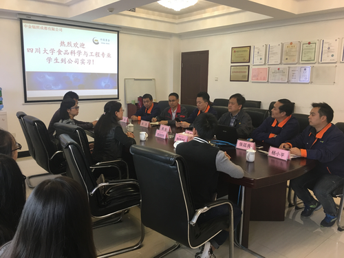 、中金辐照成都有限公司共建的大学生校外实践基地——中金辐照成都有限公司。公司董事长王志新先生、副总经理张廷良先生、生产部经理吴杰先生和技术质量部副经理杨小平先生等对我专业师生的到来表示了热烈的欢迎。董事长王志新先生对公司的发展历史、规模以及现有产品做了简单介绍,着重介绍了辐照技术的特点以及在食品中的应用,并对辐照技术的发展前景做了展望。辐照技术是一项前景广阔的新技术,短暂的交流学习,我系师生已受益匪浅,此次驻厂实习顺利起航也标志着轻纺与食品学院食品工程系师生对辐照新技术会有更加深入、全面的认识。
