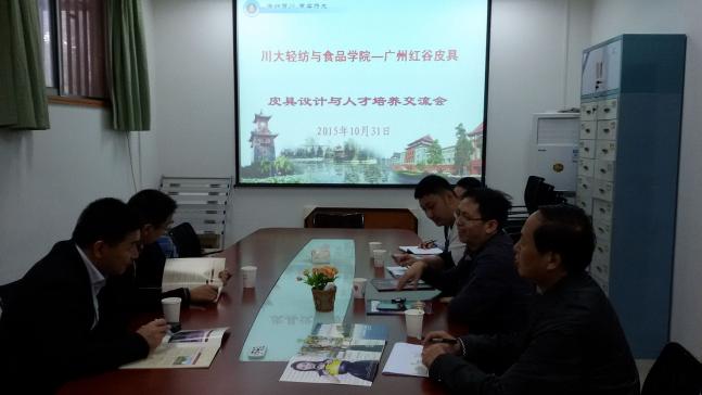 ,与革制品教研室徐波主任、曾琦老师、周晋博士,肖凯副院长、何有节等,就皮具设计研发合作、实习基地建设、人才培养、招聘学生等进行交流。何有节院长和余敏华总经理分别介绍了校企双方的情况。徐波主任介绍了羞羞漫画