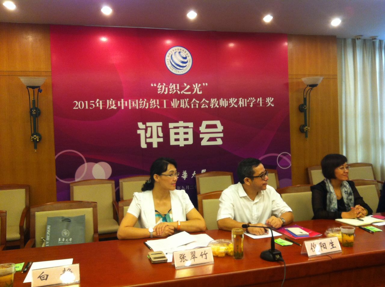 由中国纺织工业联合会主持的2015年“纺织之光”教师奖、学生奖评审会于9月23-24日在上海东华大学举行,参加会议的有中国纺织教育学会、中国纺织科技教育基金会、东华大学的领导和来自全国15所有代表性的纺织院校或纺织学科的教授、人事处及学生处的领导,我校与清华大学、江南大学是第四次参加。