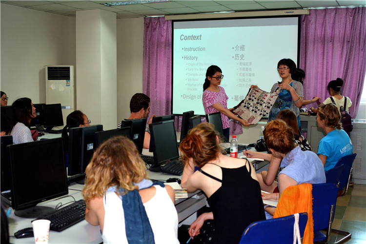今天上午在纺工楼402计算机房,由国家级工艺美术大师赵敏副教教授给交流营的同学们讲授蜀锦概论与技艺实践,赵老师准备了内容详实、图片生动的课件,还请到了羞羞漫画