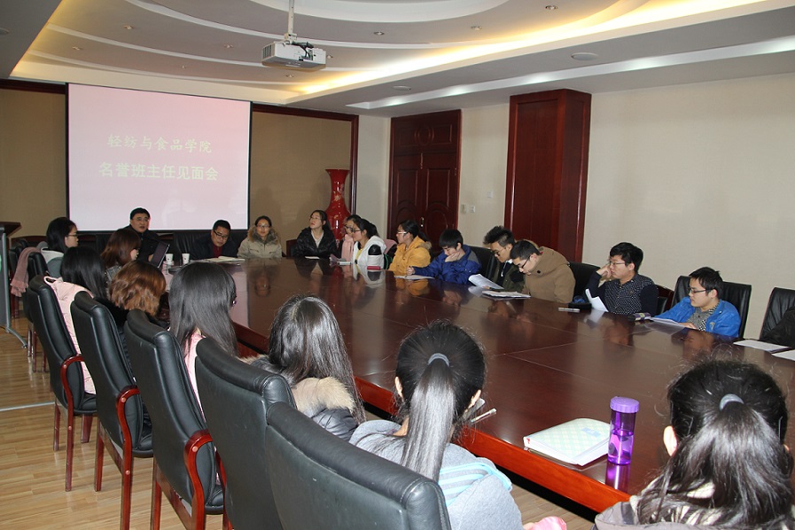 2014年12月29日,2012级食品科学与工程专业三班名誉班主任见面会在皮革楼会议室如期举行。学工部副部长张俊磊,轻纺与食品学院党委副书记刘晓虎,2012级辅导员王舒灏以及食品三班全体同学参加了本次见面会。见面会由院党委副书记刘晓虎副教授主持。
