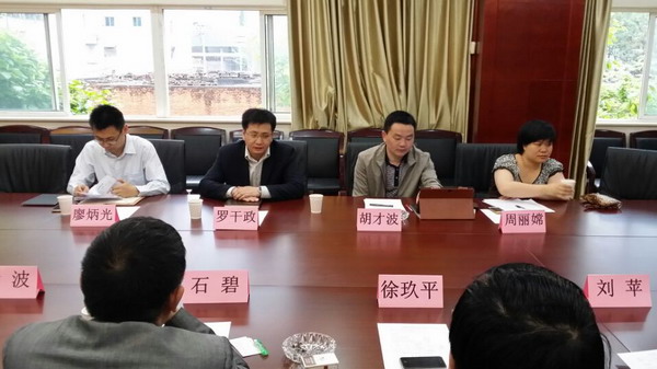 皮革清洁技术国家工程实验室会议室与到访贵宾进行会谈。 石碧院士代表学院,对广州市花都区人民政府罗区长等一行来访表示热烈欢迎。罗区长首先介绍了花都区的产业分布及各企业现状,并着重描述了花都区狮岭镇的皮革产业情况。石碧院士和徐玖平院长分别对花都区皮具产业发展提出了极具建设性的意见和建议。会上,双方还就花都区皮具产业发展的长远规划进行了详细而周密的讨论。 会谈结束后,花都区人民政府访问团对生物质与皮革工程系和制革清洁技术国家工程实验室进行了简短的参观。 (冉美玲 供稿)