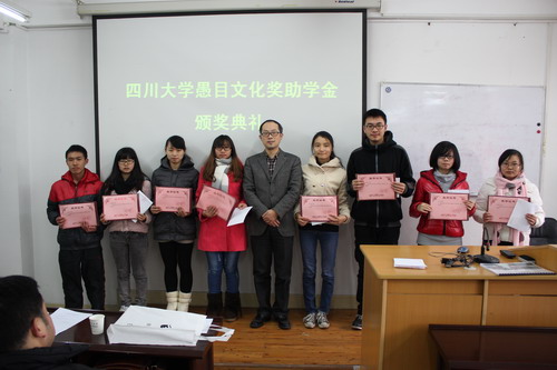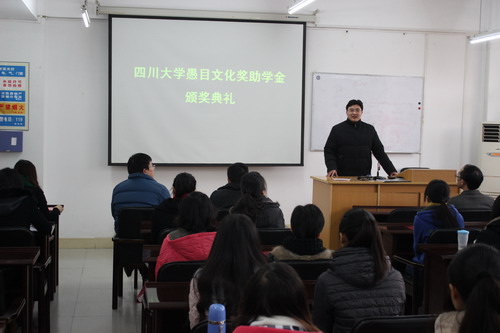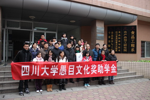 愚目文化奖助学金颁发仪式在食品工程系纺工楼202多媒体教室顺利举行,参加颁发仪式的有成都愚目文化传播公司周志明总经理,轻纺与食品学院副院长、食品工程系系主任何强教授,院党委副书记刘晓虎副教授,团委书记苏德强老师,2010级辅导员段飞霞老师,食品工程系邹华雄老师以及食品科学与工程专业全体获奖学生。颁奖典礼由院党委副书记刘晓虎主持。