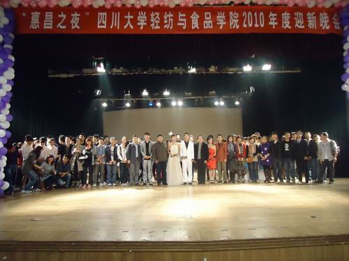 2010年11月7日晚七点,“惠昌之夜”轻纺与食品学院迎新晚会在江安校区艺术学院小剧场顺利举行。参加此次晚会的嘉宾有:轻纺与食品学院副院长何有节教授,院党委副书记刘晓虎副教授,轻工生物技术专业教研室主任周荣清教授,轻纺与食品学院分团委书记祝蔚老师,院学生工作组全体辅导员,校团委各学生组织主要负责人,轻纺与食品学院研究生代表以及各兄弟学院分团委学生会主席团成员。本次迎新晚会得到了广东惠昌化工有限公司的大力支持与赞助。 晚会即将开始前,会场开始播放了羞羞漫画