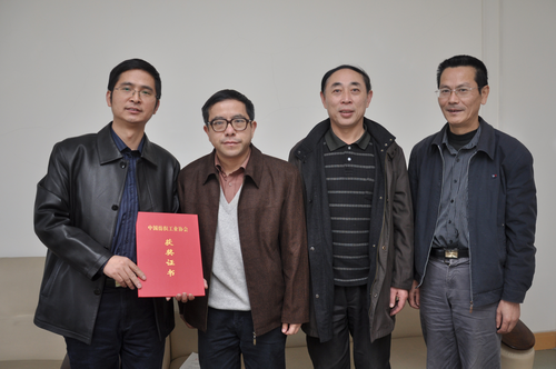 中国纺织服装教育学会倪会长(左2)向纺织系获奖者颁发证书(陈YX)