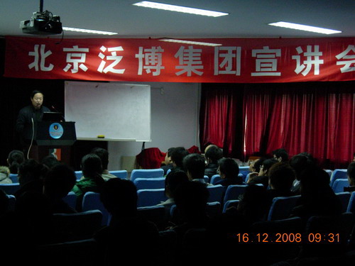 教学、科研及学生就业工作的支持。随后北京泛博集团的王冬艳女士介绍了泛博集团的基本情况以及本次的人员招聘情况。最后郑超斌总经理详细介绍了泛博集团的人才结构、科研活动及产品销售等情况,并就学生所关心的问题作了详细的讲解。宣讲会结束以后,泛博集团还就本科生、研究生同学进行了面试,并从中选择了四名优秀毕业生。 北京泛博科技有限责任公司是我国首家裘皮化工材料的专业制造商。是国内首家&目前规模最大的裘皮化料生产企业,享有“中国裘化第一家”的品牌。其销售网络遍及全国各地,是目前业界销售量最大、服务最完善的企业。品种涉及染料、助剂、脱脂剂、加脂剂、复鞣剂、增光(白)剂、漂白(色)剂、酶制剂等覆盖全部皮草生产过程,并率先通过国家染料中心和德国莱茵公司的环保检测认证。2003年公司通过ISO9001:2000国际质量体系认证,产品质量达到或接近国外同类产品的水平,有些产品如捷力®MN系列草上霜染料甚至超过国外同类产品。生物质与皮革工程系2008年12月16日