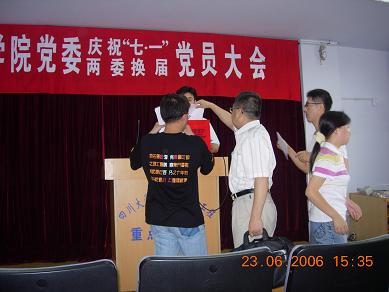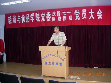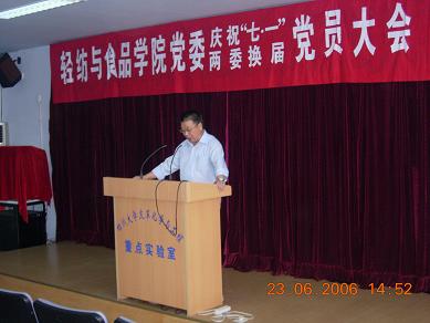 2006年6月23日下午,中共轻纺与食品学院委员会两委改选暨“七一”表彰党员大会隆重召开,党校常务副校长唐俊文代表学校党委组织部参加了大会,会议由刘晓虎同志主持,刘学文同志代表学院上一届党委作了要作报告。