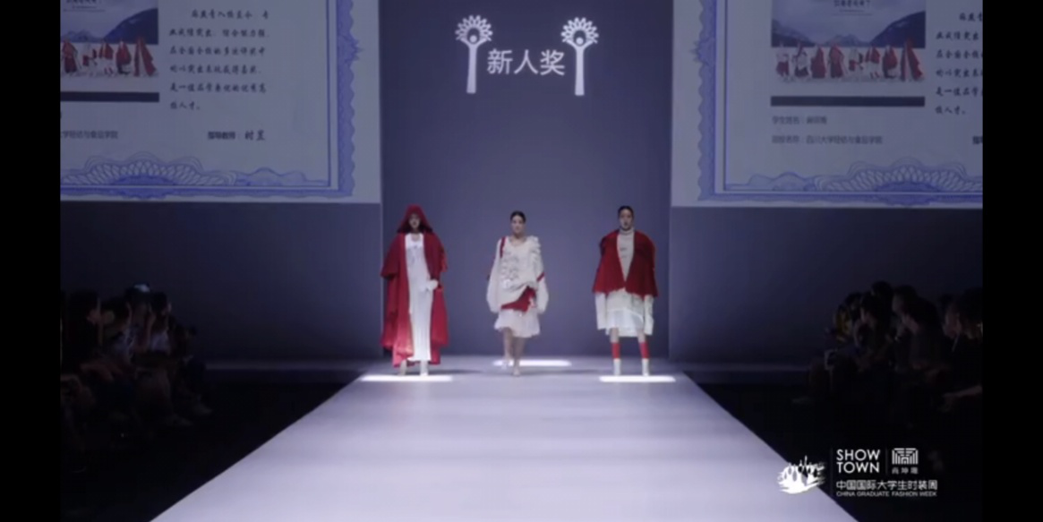 服装与服饰设计专业毕业生麻燕青同学获得新人奖优秀奖。