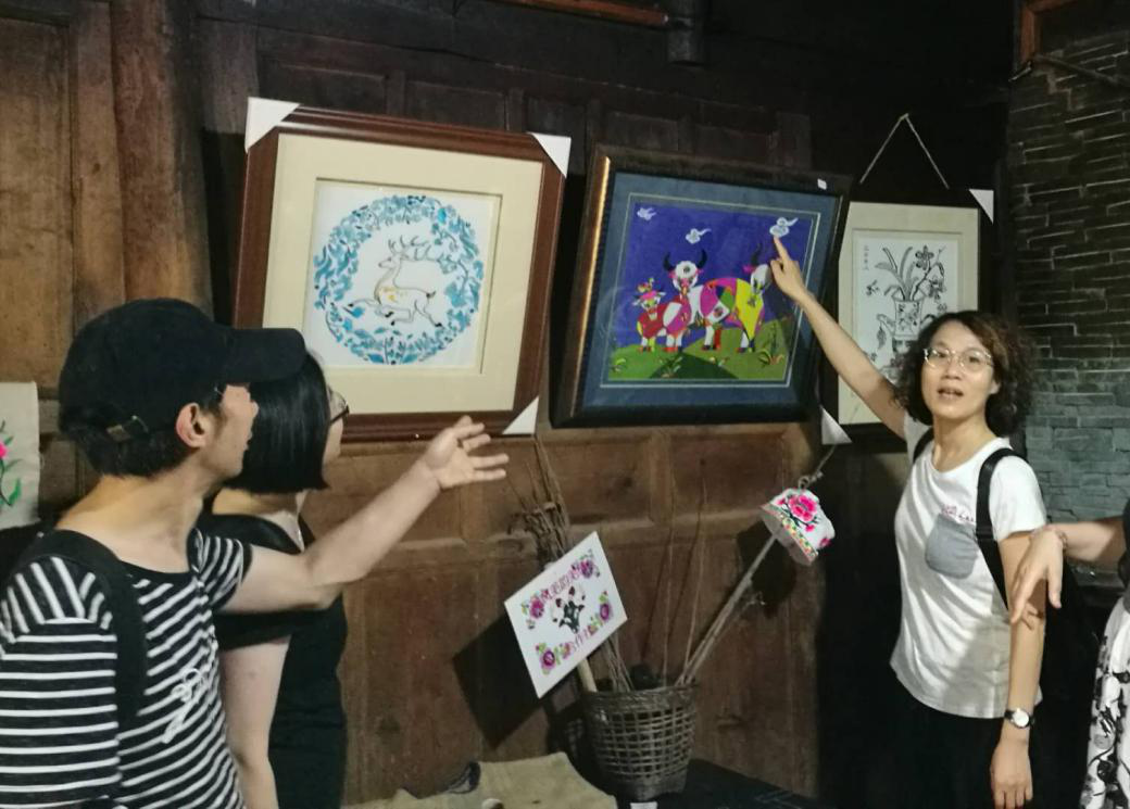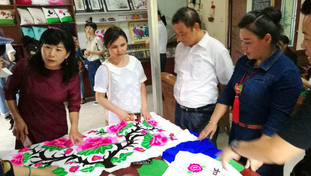 �3 赵武主任带领老师们在绣坊内与绣娘进行讨论