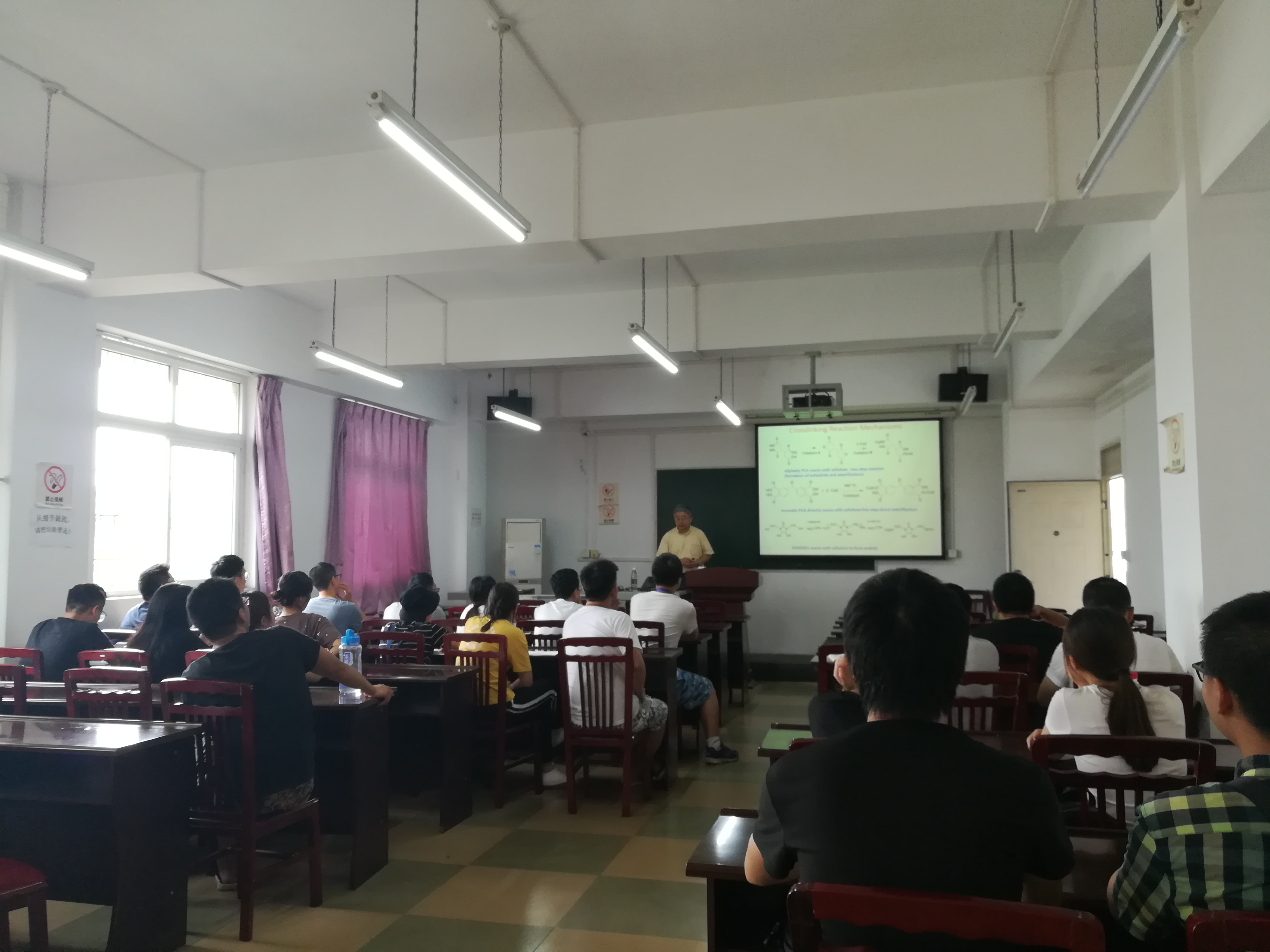 �教授�全英文课程�Functional Textile�内容涵盖抗静电、抗紫外、抗菌、阻燃等功能纺织品的主要研究方法和最�研究进展�通过为期两周�16学时的课程学习,学生对功能纺织品有了深入了解�同时英语听说能力�有进一��提升。课间休�时间孙教���学生们分享了加州大学戴维斯分校的办学特色和校园风景,�欢迎大家�交流和学习�孙教�高深的学术造诣、严谨的科学思维和启发式�教学方法�大家留下了深刻的印象���学生们的一致好评�除纺织工程大二、大��学生之外,生物工程专业、轻化工程专业、食品科学与工程专业的部分学生也选修��课程�并取���良的成绩�