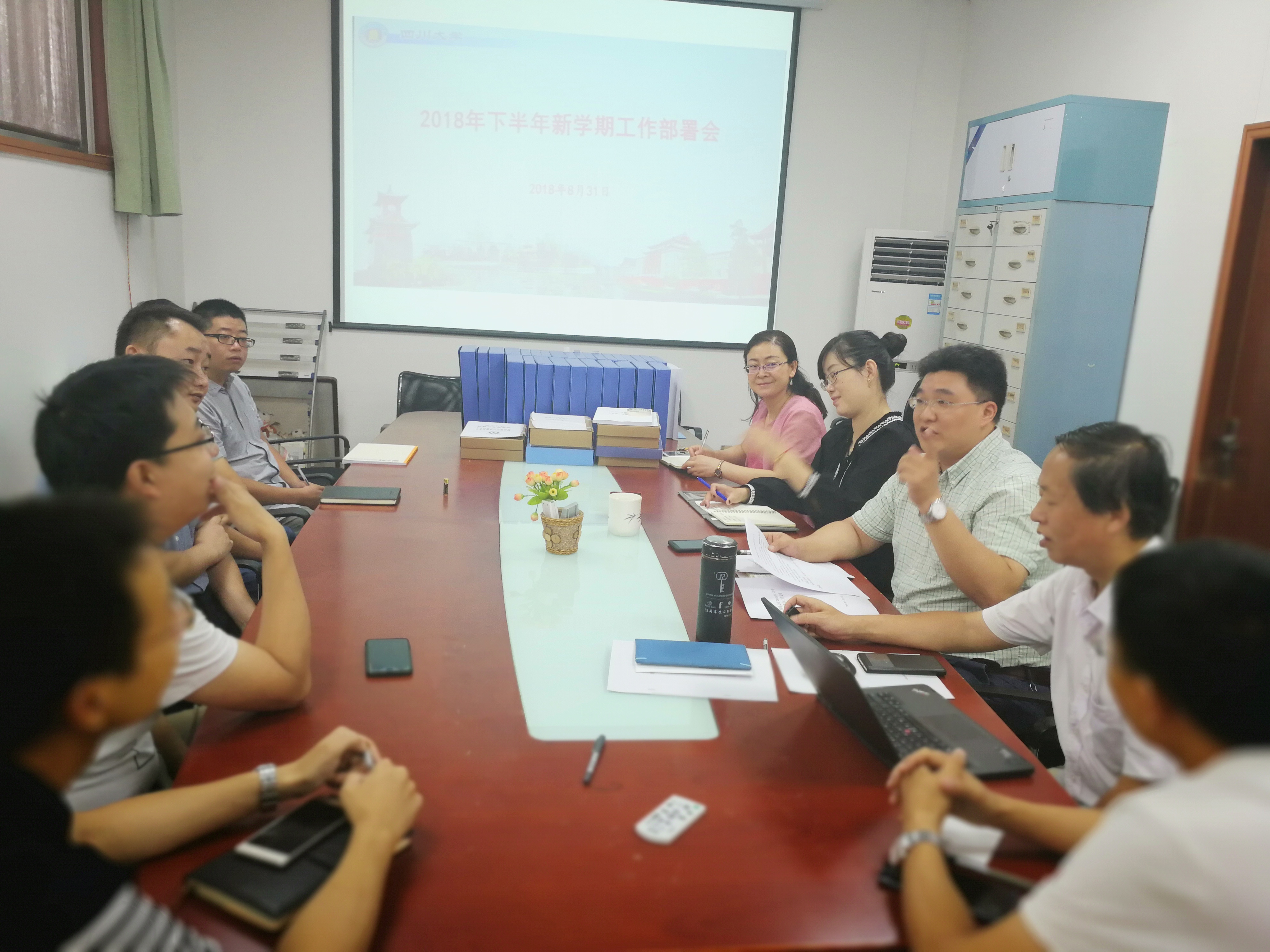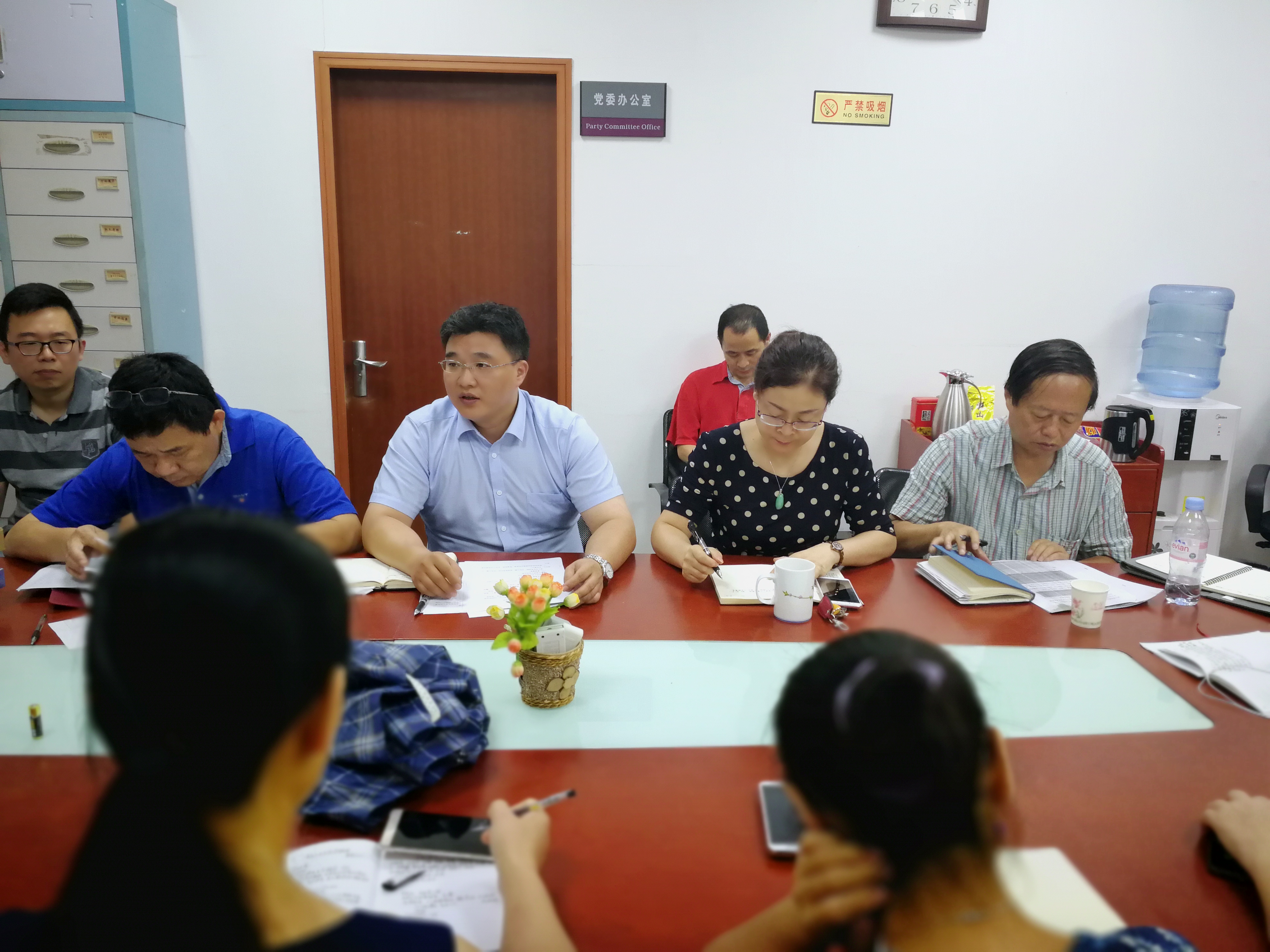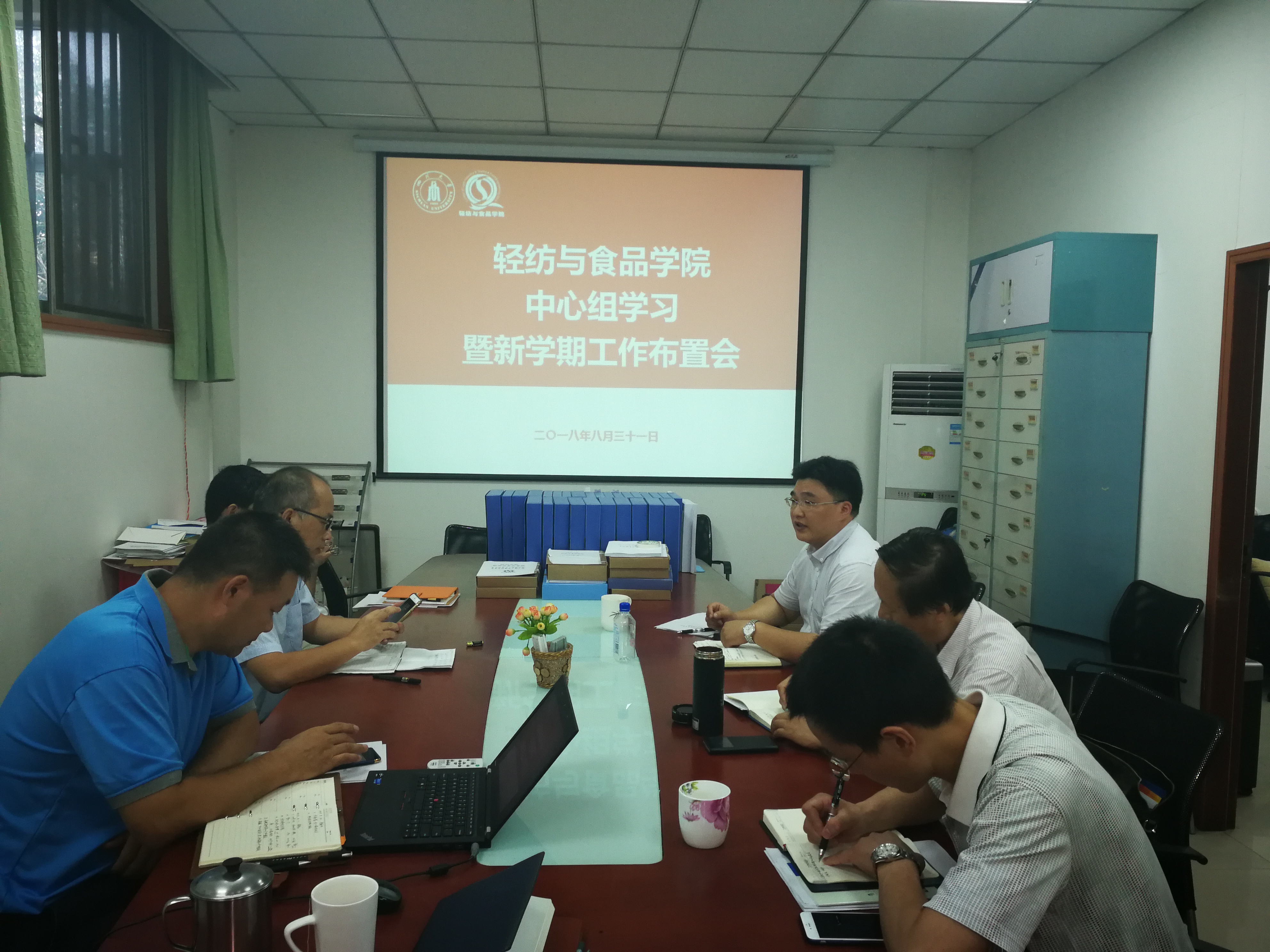 2018年8月31日下午,在学校召开新学期工作会议之后,学院在纺工副楼201会议室先后召开了学院中心组学习会和党政联席会议。在组织学院中层领导班子集体学习习近平总书记在全国宣传思想工作会议上的重要讲话精神后,全体班子成员对上学期工作、暑期工作、本学期重点工作进行了研讨,特别就本科教学审核评估工作进行了充分讨论和细致部署。