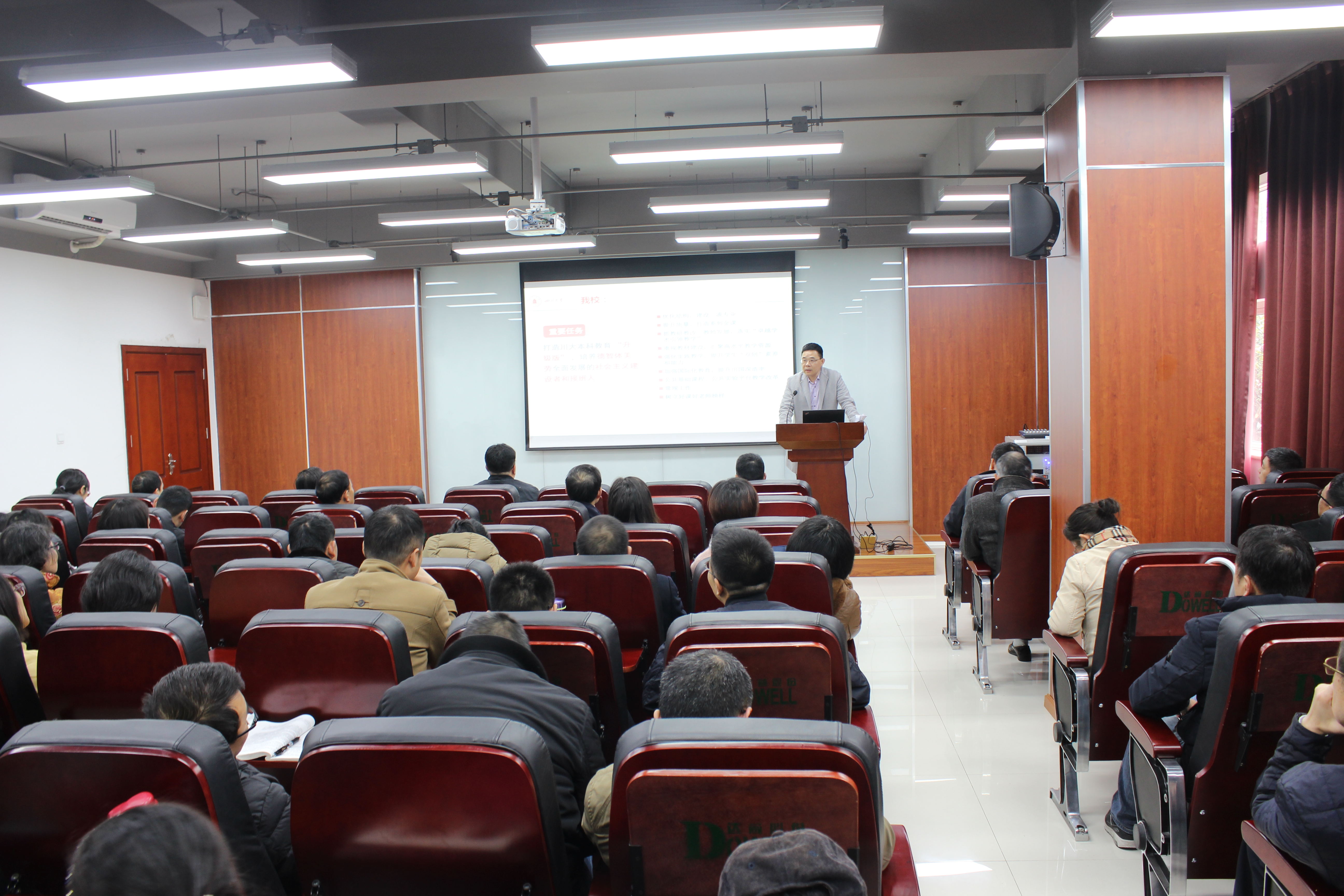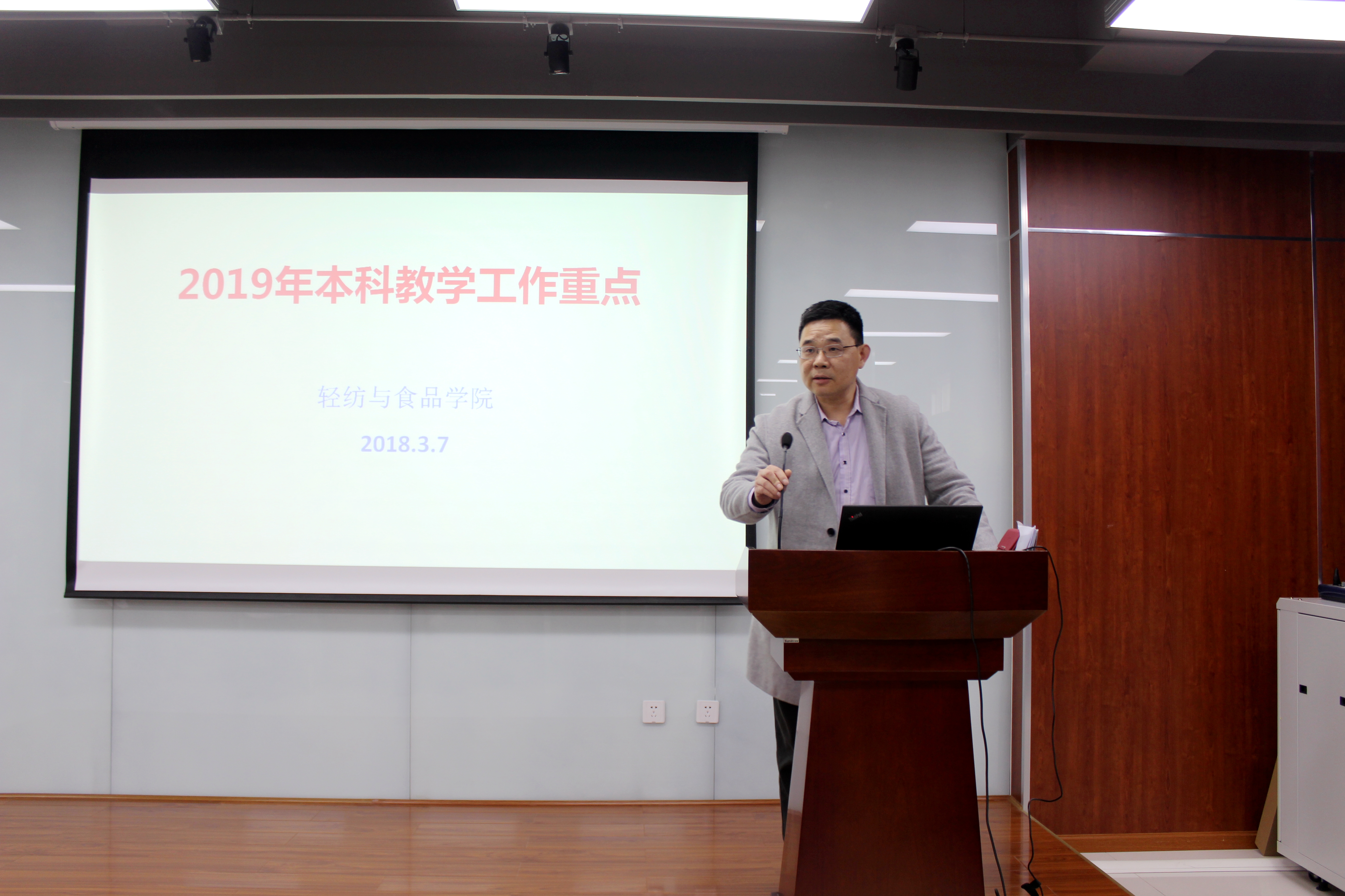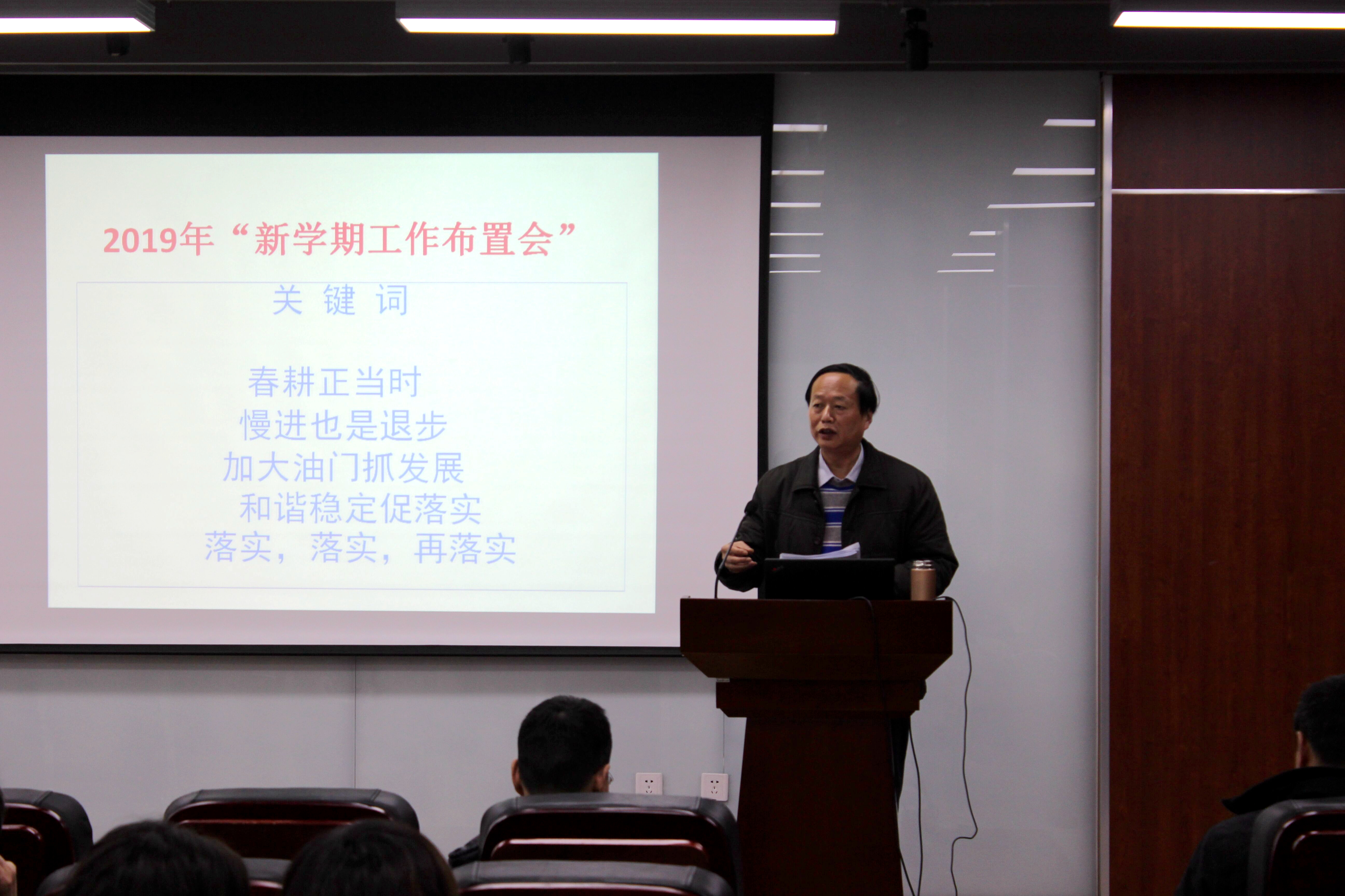 2019年3月7日下午,学院在皮革楼215报告厅举行全院教职员工大会,传达部署落实新学期工作。