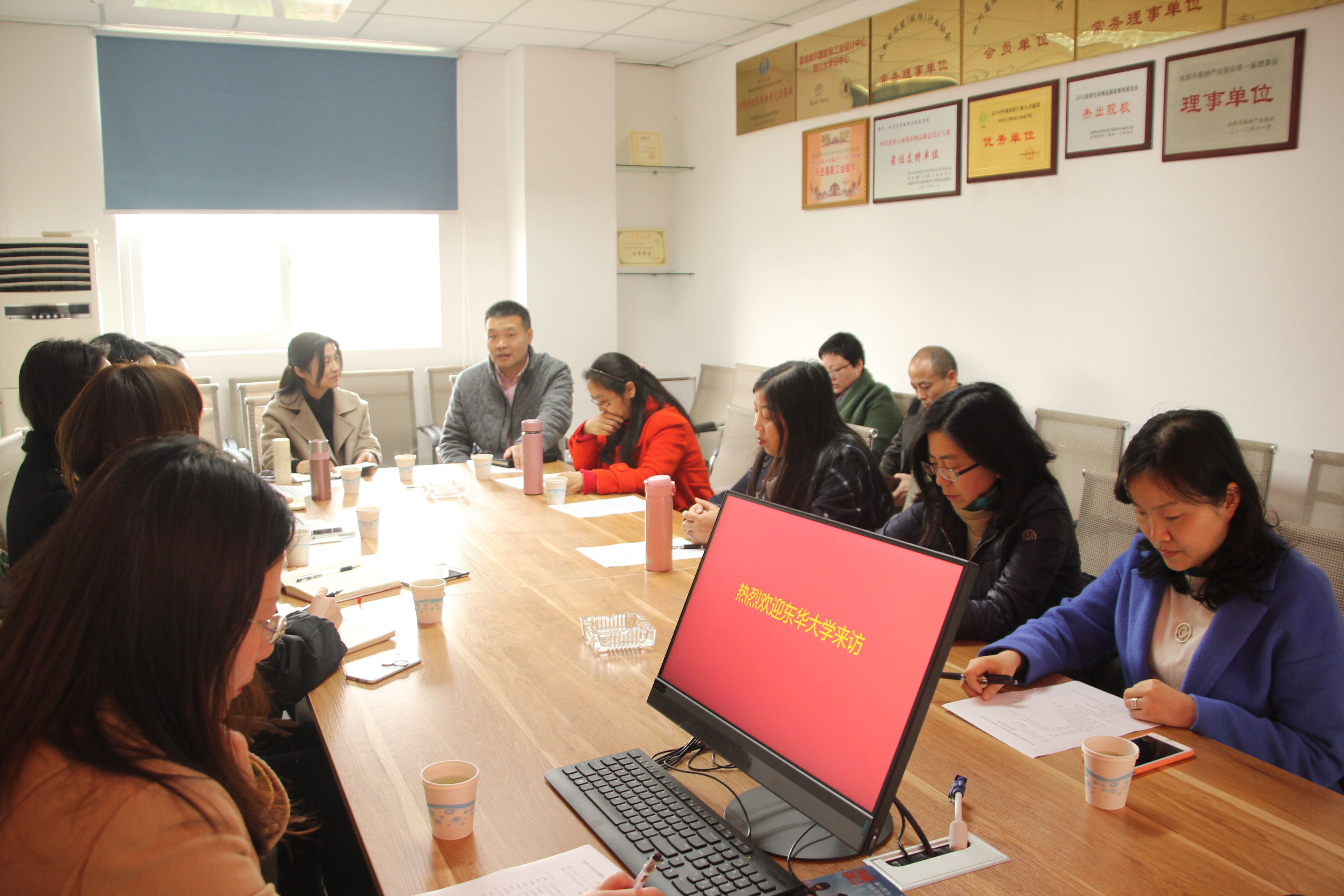 进行交流,肖凯副院长、纺织与服装工程系主任郭荣辉、服装教研室主任冯洁、纺织教研室主任张勇及服装教研室教师们进行了交流会谈。