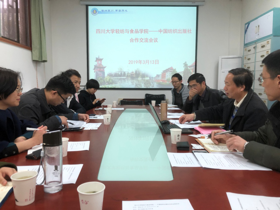 进行合作交流,何有节院长,冯国涛副书记,纺织与服装工程系和皮革工程系部分老师参加了座谈。会议由何有节院长主持,李炳华总编介绍了“全国百佳出版社”——中国纺织出版社有限公司的发展变迁,以及与川大合作的传统,并欢迎羞羞漫画