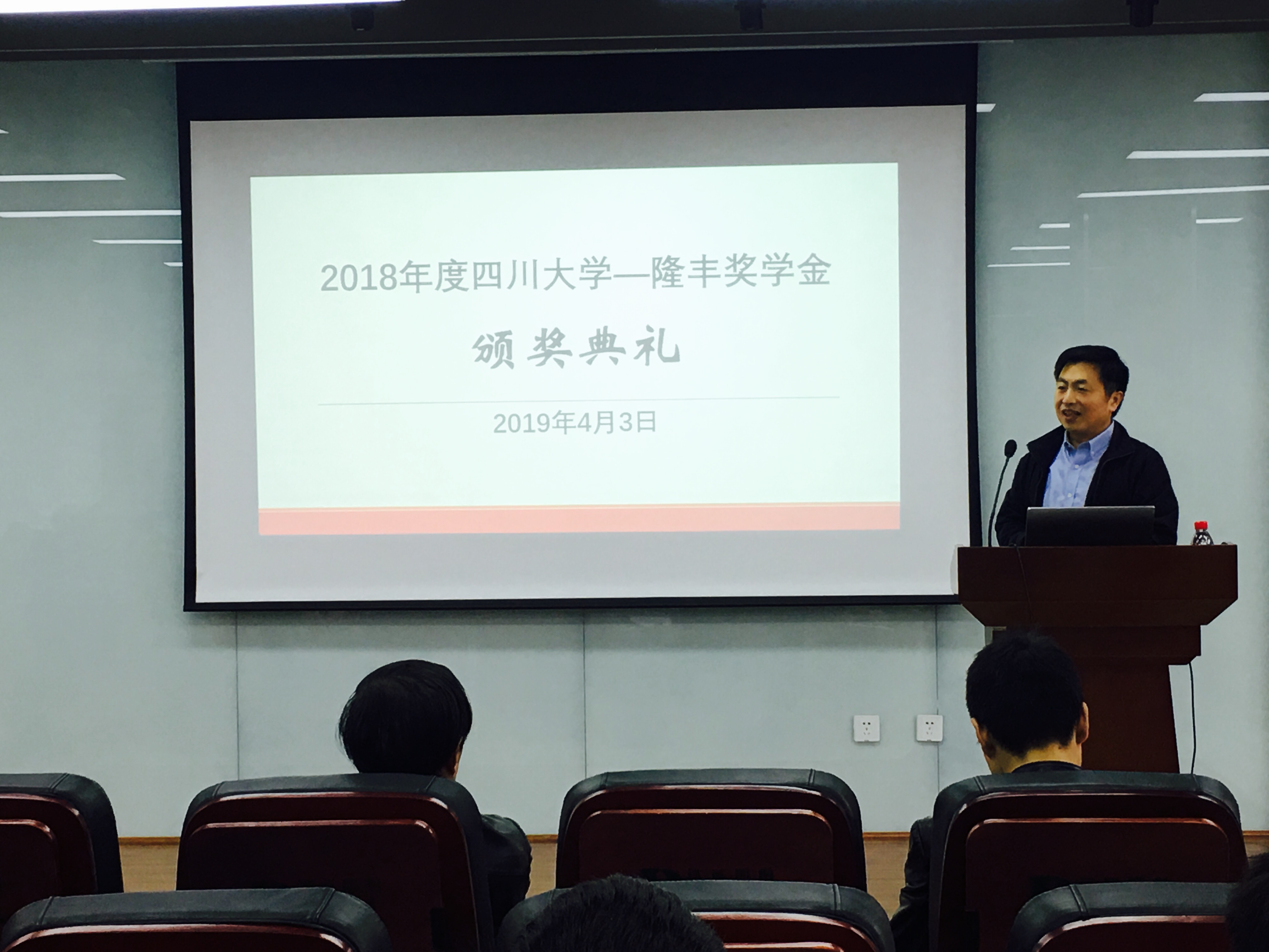 —隆丰奖学金呢”获奖学生逐一颁奖。