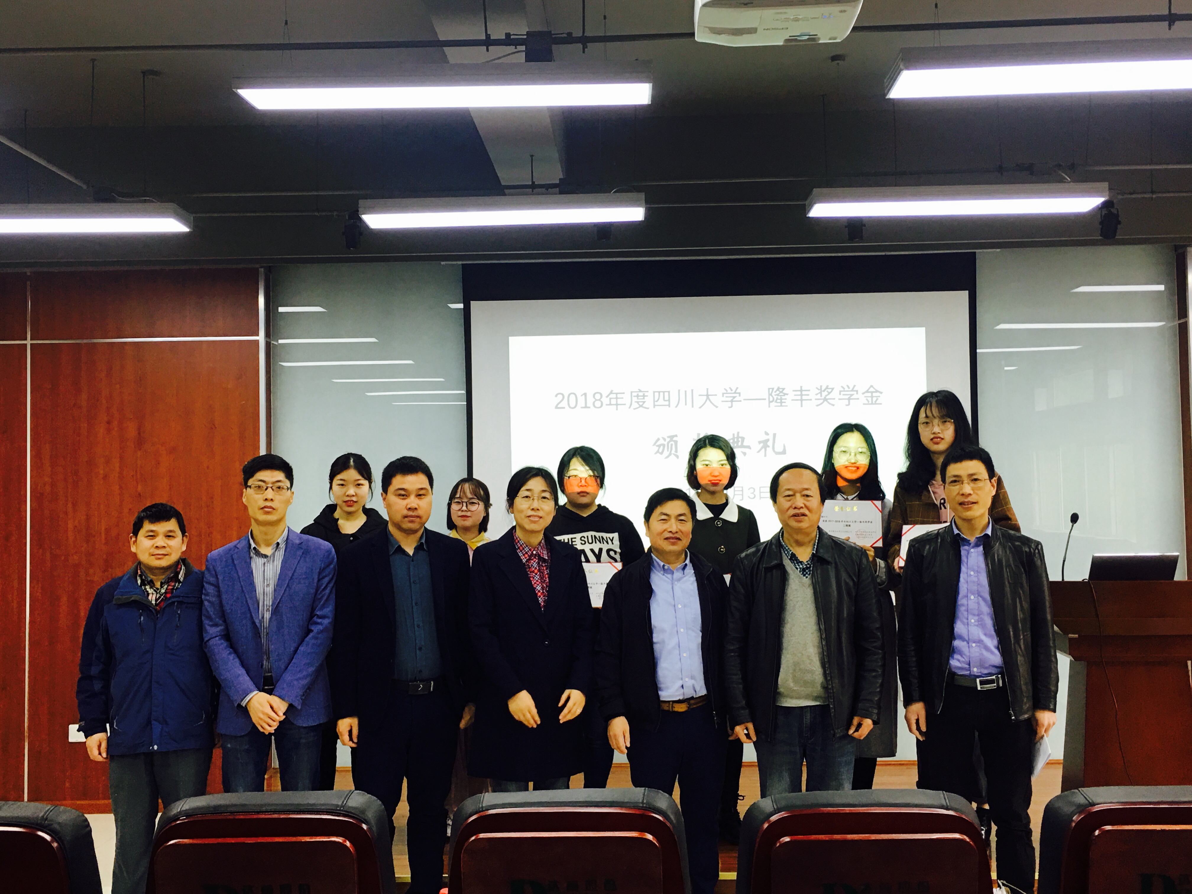 的人才培养、校友就业以及技术合作等方面的大力支持表示谢意,对通过自己努力,获得本次奖学金的同学表示衷心的祝贺;同时表达了行业的大量人才需求增强了学生的自信心与自豪感。紧接着隆丰皮草企业有限公司副总经理仲济德先生代表公司讲话,仲总讲述了从2009年开始与川大的全面合作,对川大学子在企业的优异变现表示赞赏。同时隆丰公司发展规模不断扩大、公司领域不断拓宽,尤其是在裘皮、制革、制鞋、污水处理以及国际合作等领域不断取得新的成绩,公司的进一步发展离不开人才、技术人员的支撑,因此公司也非常重视高校的专业人才培养,希望能通过奖学金的设立,让更多的学生了解隆丰、走进隆丰,与隆丰一起成长、发展。随后何有节院长宣读了获奖名单,并由到场的各位领导与嘉宾一起为第一届“羞羞漫画