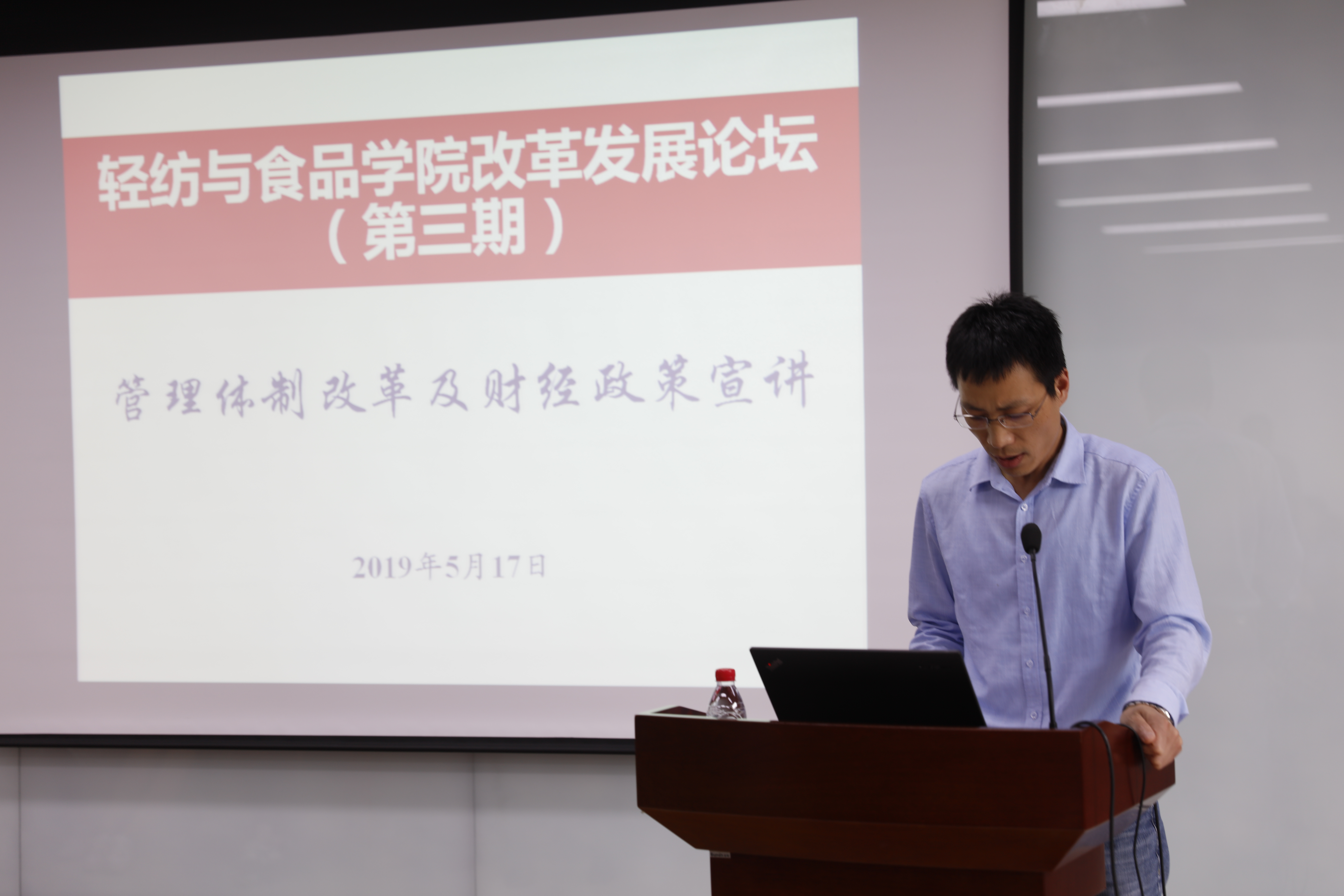 2019�5�17日下午,学院在皮革楼215报告厅,成功举办改革发展第三期论坛——学院管理体制改革大讨论及财经政策宣讲,全院教职员工参加了本次大会�