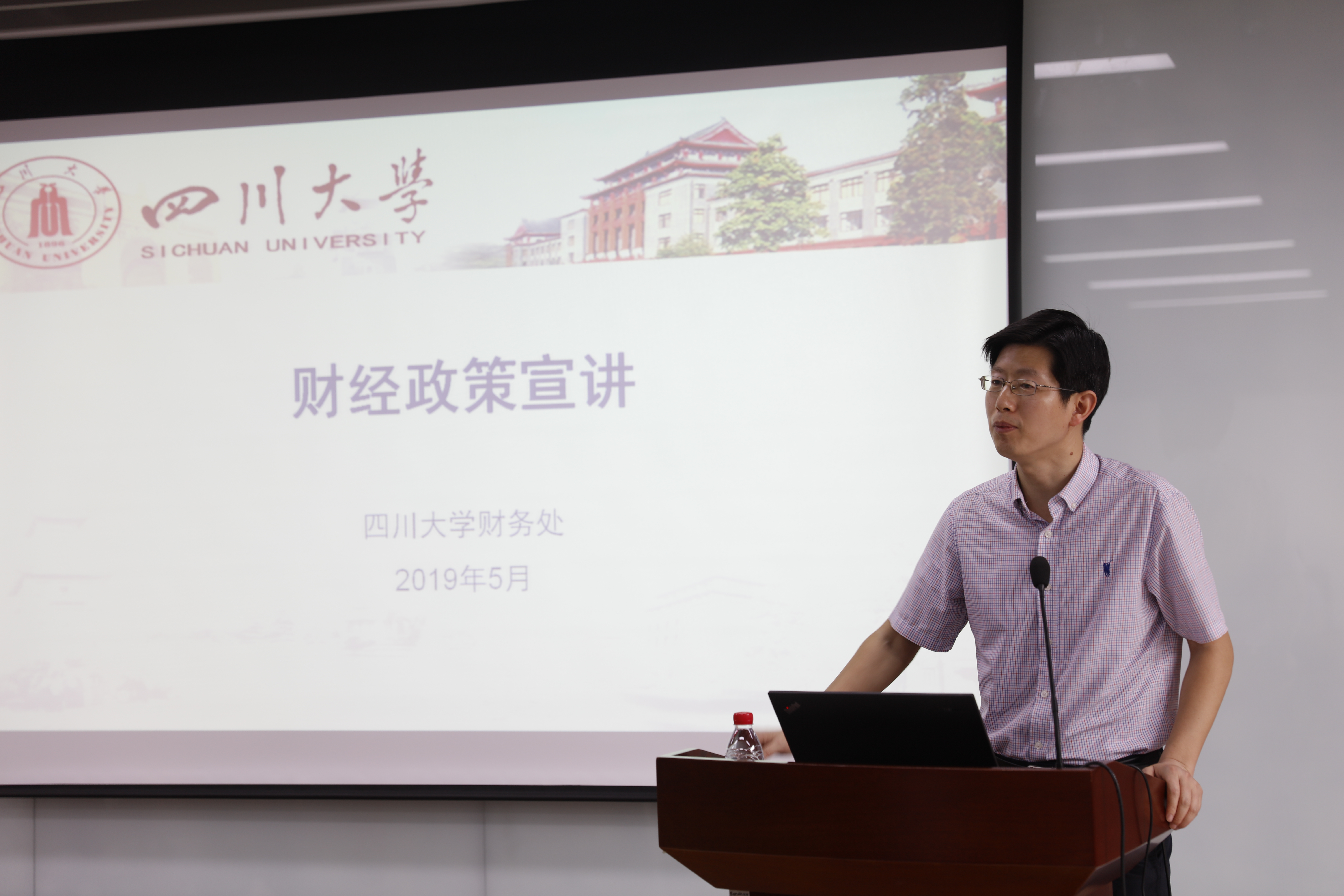 冯国涛副书记主持大会的第一项议程。学校财务处王春举副处长首先就校院两级管理体制改革中的财务管理制度改革向全院教职工作宣讲。吴思思、何明霞和张芹等三位老师分别就科研项目报账、个税政策、财务报销等教师普遍关心的内容,向全院教职工作政策解读�