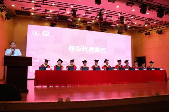校友代表�2005级轻化工程专业本科学生�2009级皮革化学与工程专业硕士研究生,�海合之力投资管理有限公司投资副总裁、成都合力蓉信股权投资基金管理有限公司总经理彭洲同志首先祝贺师弟师妹们顺利毕业。随后结合自己七年的工作经历,诚挚的建议并鼓励师弟师妹们靠自己披荆斩棘的行动练就内心的强大;保持年轻的心态,培养正向的兴趣爱好和生活习惯,不断自我成才,跟上时代步伐,并预祝各位同学人生各自精彩�