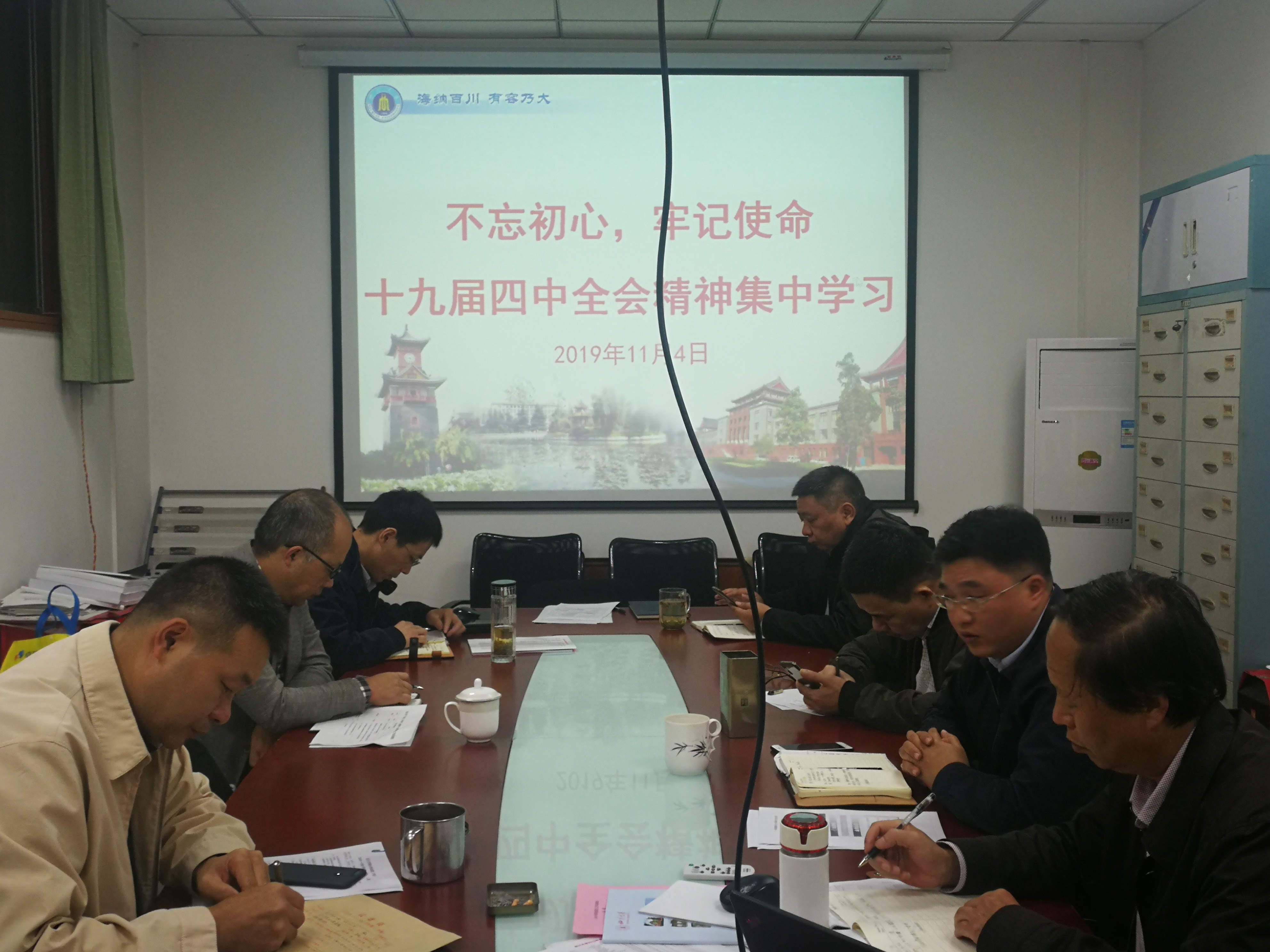 2019年11月4日、11月7日,羞羞漫画 在纺工附楼201会议室召开十九届四中全会精神学习。学院领导班子成员、教职工党支部书记参加了本次集中学习。对十九届四中全会精神中坚持党的领导、坚持社会主义制度、制度保障、治理方略等方面进行了重点学习。下一步,还要组织全院师生对十九届四中全会精神进行学习研读。