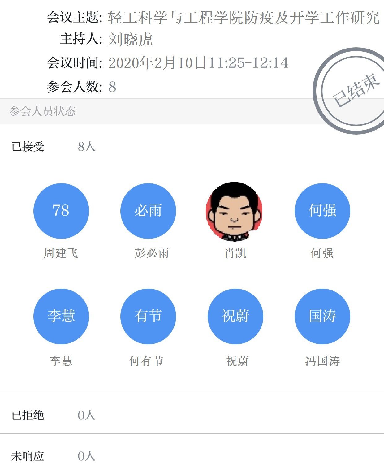 会议由刘晓虎书记主持。他首先通报了近期新冠肺炎疫情的防控形势,指出在增强信心的同时更要强化责任担当;其次是组织班子集体学习了全国教育系统疫情防控工作视频会议的精神;最后从开课及返校、师生个人行踪及健康状况监测、防控诊治、工作保障、本科及研究生教学、师生人文关怀、联动机制、组织保障等八个方面,组织对疫情防控和开学工作进行研究。班子成员分别就个人分管的本科教学、研究生工作、学生工作、物资保障、实验室建设等工作,提交工作规划及方案进行审议。最后,刘晓虎书记对本次会议的成果进行梳理和总结,再次强调做好疫情防控和开学线上教学的重要意义,并提出加强政治引领、强化责任担当的工作要求。