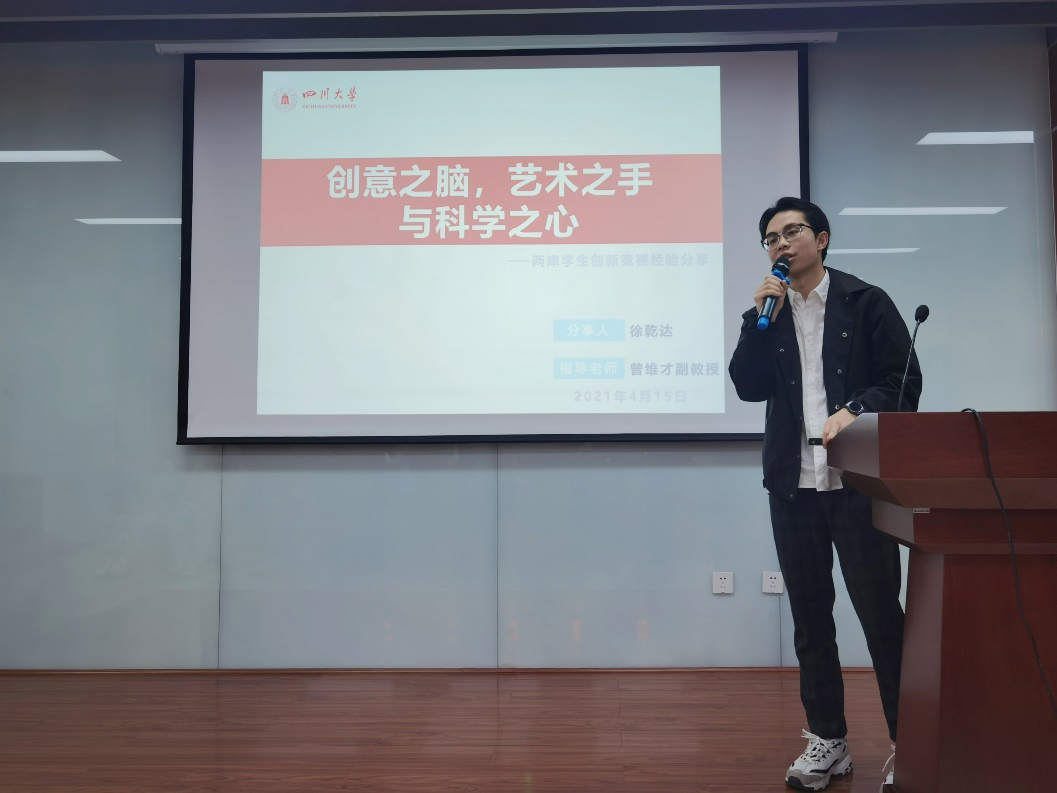 随后,我�2019级农产品加工及贮藏工程专业研究生徐乾达同学作为往届获奖学生代表为现场的同学们进行了经验分享。徐乾达通过创意之脑、艺术之手与科学之心三个方面对自己参加竞赛的经历进行总结,并结合本届大赛主题,分享了自己的思考,告诉了同学们如何才能做好创新�
