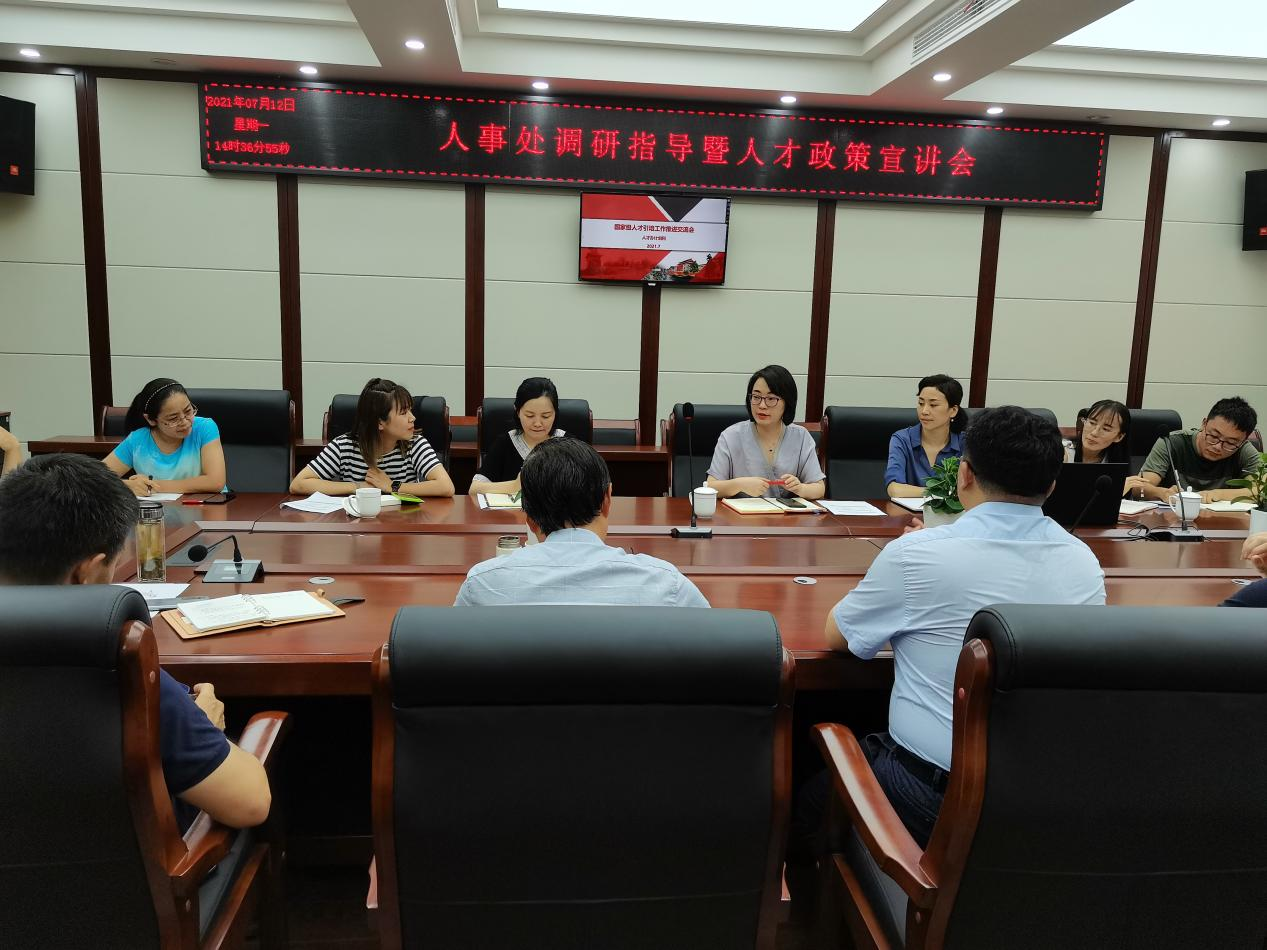 调研指导青年教师的成长并宣讲相关政策。校人才办副主任刘丸源、人才办计划科科长穆飞、副科长敬沁竹、人才办朱蕊,学院领导班子成员、相关青年教师参加了会议。
