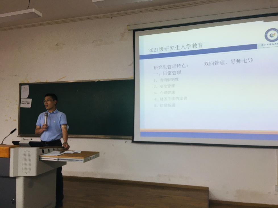 开学典礼结束后,学院紧接着�2021级新同学进行了入学教育。冯国涛副书记从研究生日常管理、学习管理、组织建设、近期安排等方面作了详细介绍。研究生教务徐雅琳老师详细介绍了研究生培养计划,解答了同学们提出的问题。党政办李艳老师对新生组织关系转接、党员日常管理等工作做了详细介绍。至此,本次学院开学典礼暨入学教育大会在热烈和谐的气氛中圆满落幕�