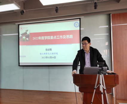 随后,彭必雨院长从学校主要目标及任务、学院情况分析、学院建设目标及思路三方面向全院教职工深入分析了学院�“十四五”和新一轮“双一流”建设发展中面临的优劣势,提出了下一步工作思路与举措。彭院长提出,各专业/学科需进一步凝练学科发展方向和目标,以“碳中和+”�“医�+”、“信�+”等国家重大发展战略为契机,深入探索学科/专业交叉融合的途径,深入思考新工科如何“破题”,奋斗“十四五”、聚焦“双一流”,实现高质量人才培养、高层次人才队伍和高水平科学研究,全面推进学院高质量内涵式发展�