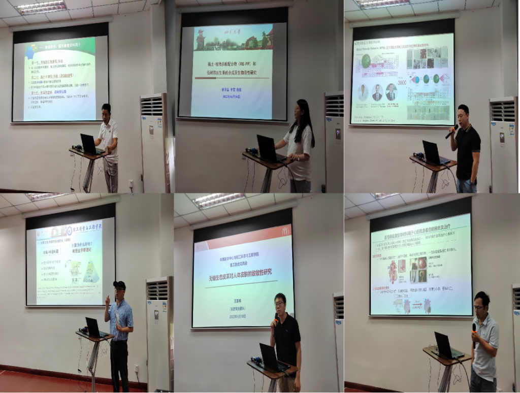 随后,学院13个课题组负责人或团队成员从项目内容、项目进展和期望合作方向等方面进行了介绍。内容涵盖骨科矫形、固形康复板材、植物多酚基生物医用材料、食品中药食同源研究、特需医学食品创制、无铬生态皮对人体皮肤致敏性研究、止血材料、贻贝仿生材料、活性硫化物生物材料、多功能胶原基医用材料等方面。