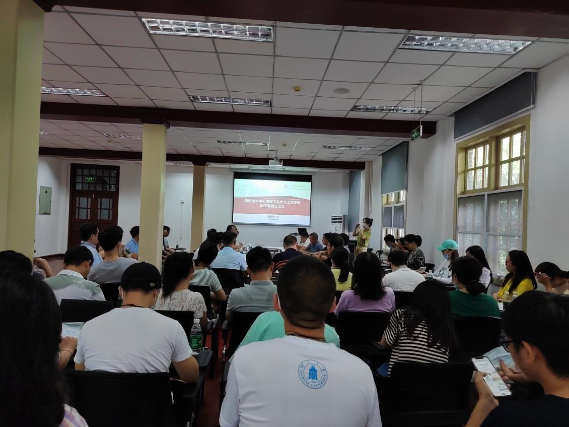 2022年6月30日上午,李天富书记带领学院13个课题组共23人前往华西校区东二教307会议室,与华西医学中心相关人员开展医工融合方面的交流。华西医学中心学科建设部成果部长、医学人才部蒋莉华部长、“医学+材料”中心肖宇老师、“医学+制造”中心胡凌静老师、华西医院化妆品评价中心熊丽丹老师、华西医院相关科室团队成员及相关人员出席会议。会议由成果部长主持。