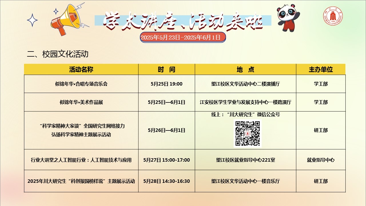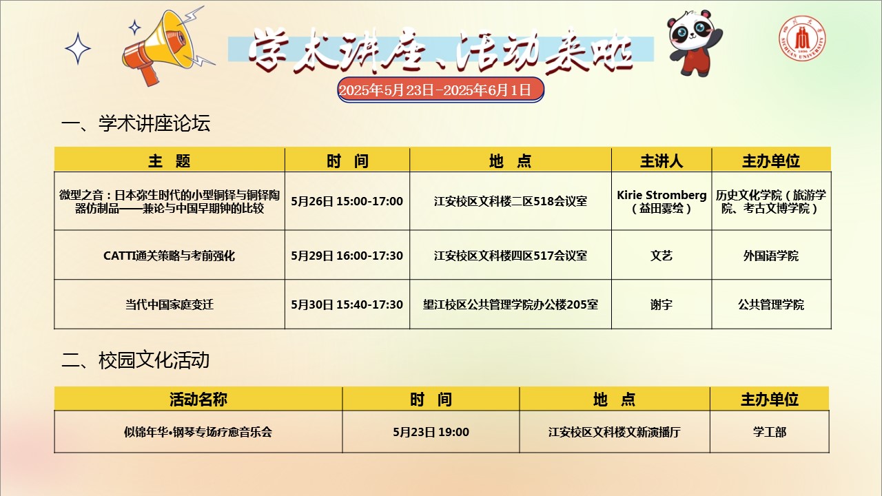 学术讲座论坛及校园文化活动预告(2025年5月23日-2025年6月1日)