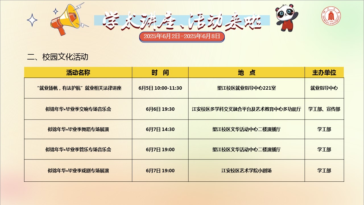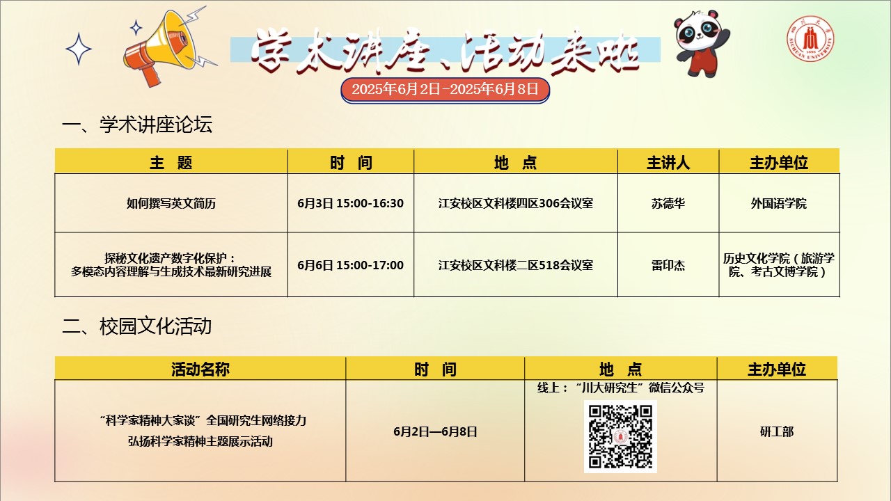 学术讲座论坛及校园文化活动预告(2025年6月2日-2025年6月8日)