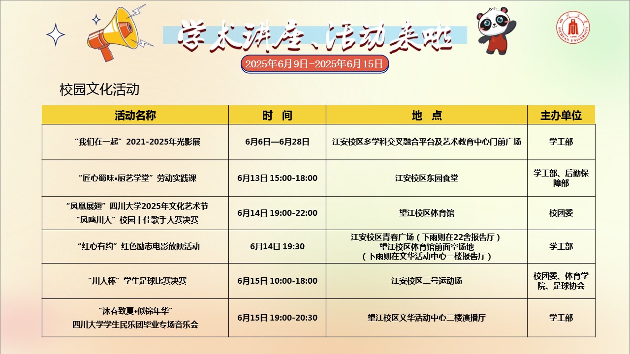 校园文化活动预告(2025年6月9日-2025年6月15日)