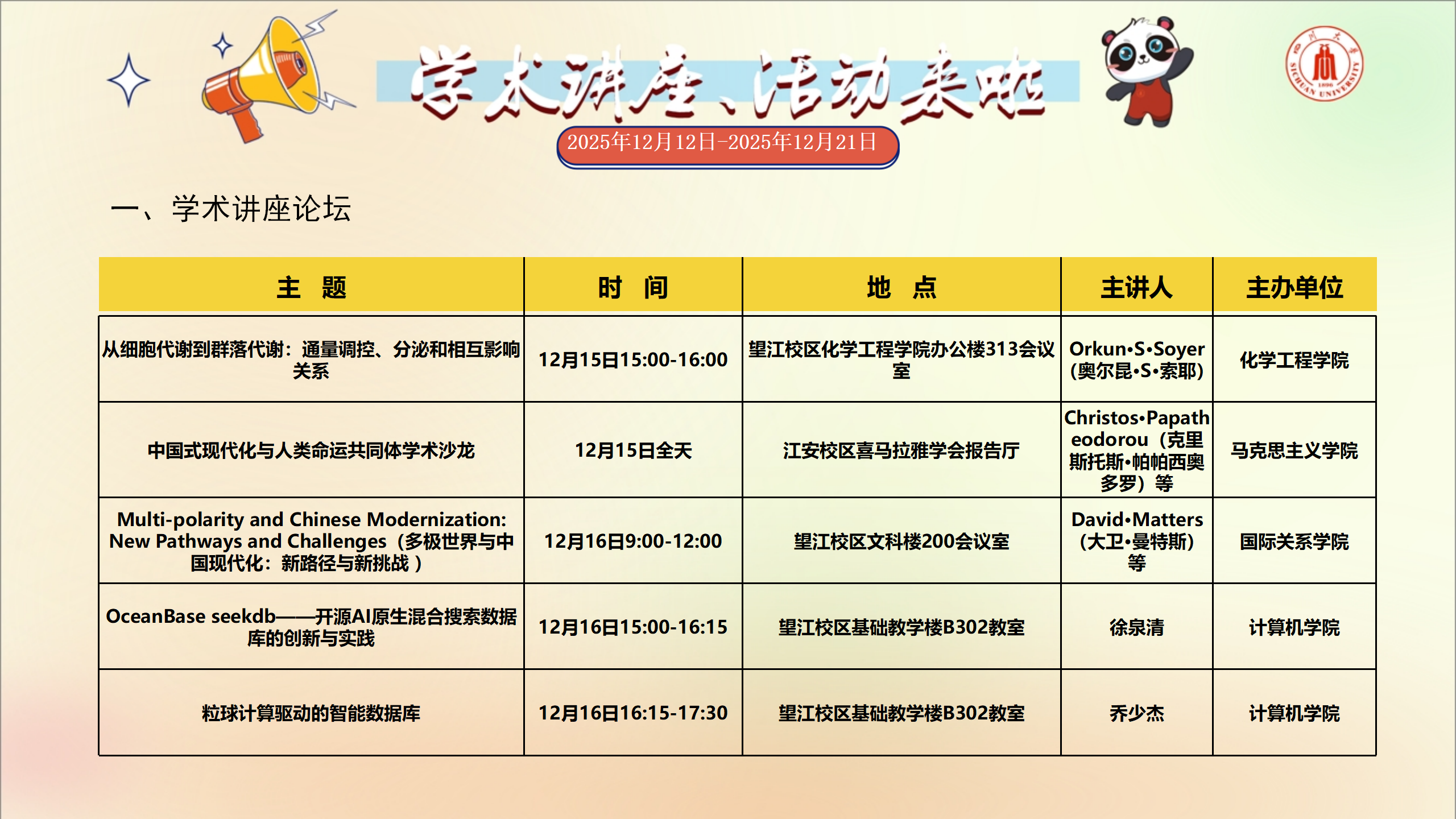 学术讲座和校园文化活动预告(2025年12月12日-2025年12月21日)