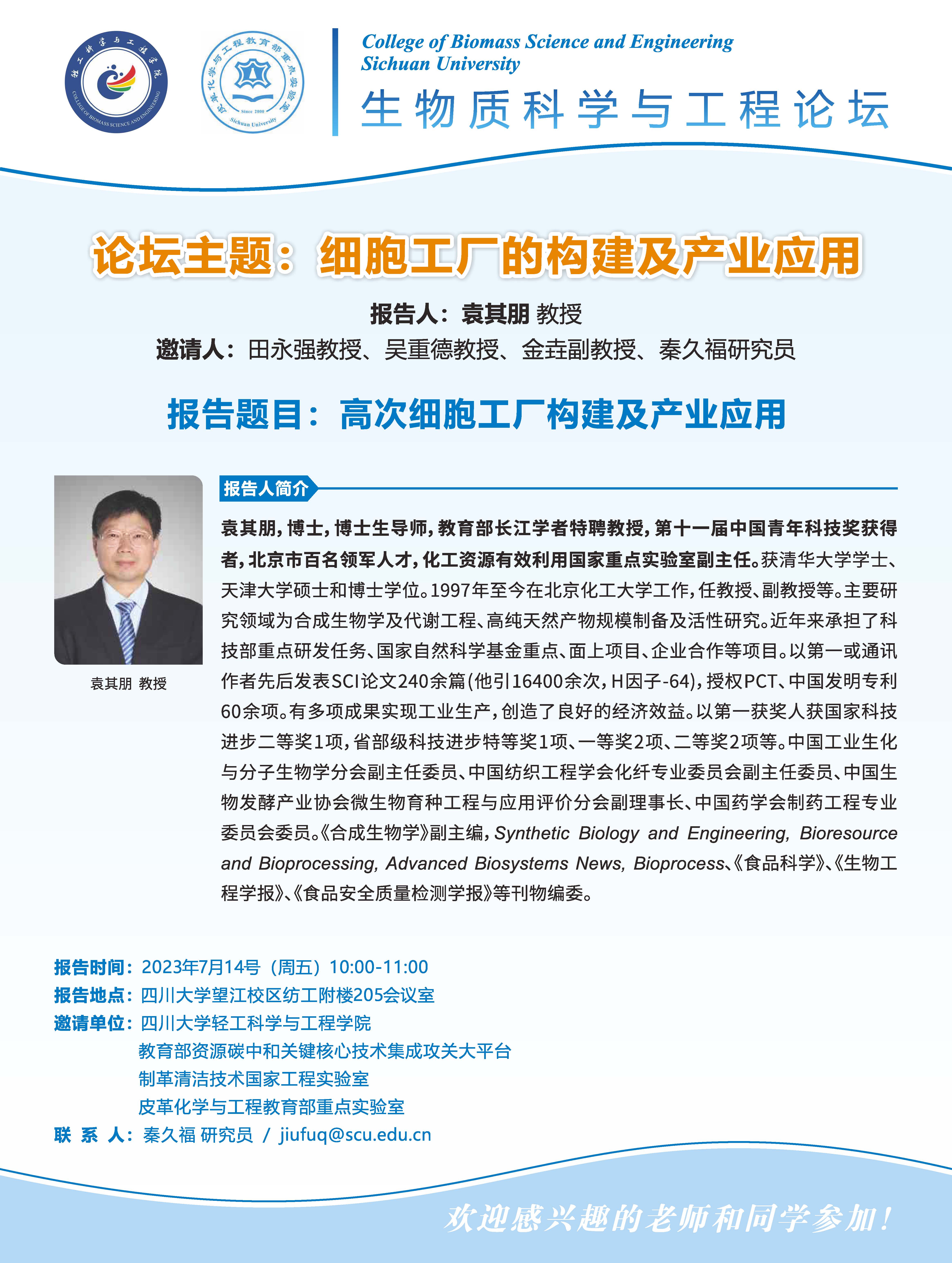 生物质科学与工程论坛:袁其朋教授 学术报告
