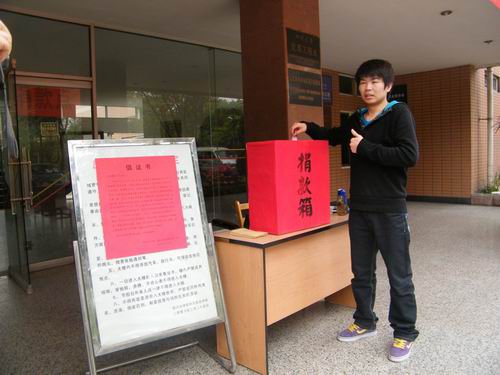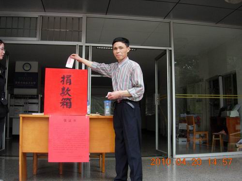 师生共捐款6342.90元,爱心捐款已由校工会通过省红十字会捐送玉树地震灾区。 捐款现场部分照片: