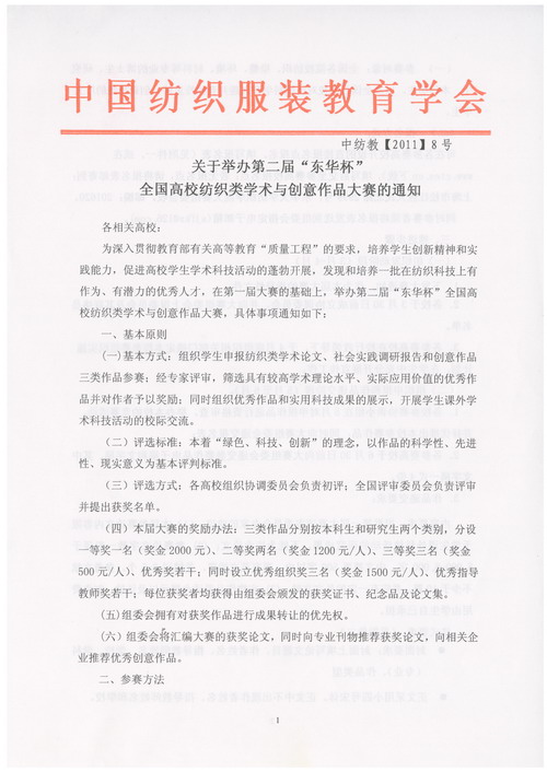 第二届“东华杯”全国高校纺织类学术与创意作品大赛的通知